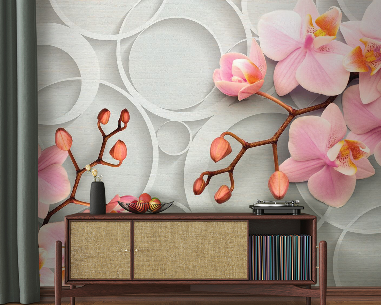 Zmień swoje wnętrze dzięki fototapecie „Delikatne kwiaty na okrągłym tle”. Wyobraź sobie, że wchodzisz do pokoju, w którym delikatne, różowe orchidee tańczą na tle fantazyjnych okręgów – jakby natura i sztuka postanowiły urządzić małą, przytulną imprezę. Delikatne odcienie i elegancki wzór tworzą atmosferę, która jest lekka i podnosząca na duchu, idealna na leniwe niedzielne poranki lub popijanie kawy podczas czytania dobrej książki. Kto nie lubi odrobiny kwiatowego uroku, który rozjaśnia dzień? To coś więcej niż dekoracja – to nastrój. Wyobraź sobie, jak Twoi znajomi będą się zastanawiać, gdy wejdą do środka – komplementy gwarantowane! Wprowadź odrobinę piękna natury na swoje ściany i zobacz, jak Twój dom rozkwita stylem.
