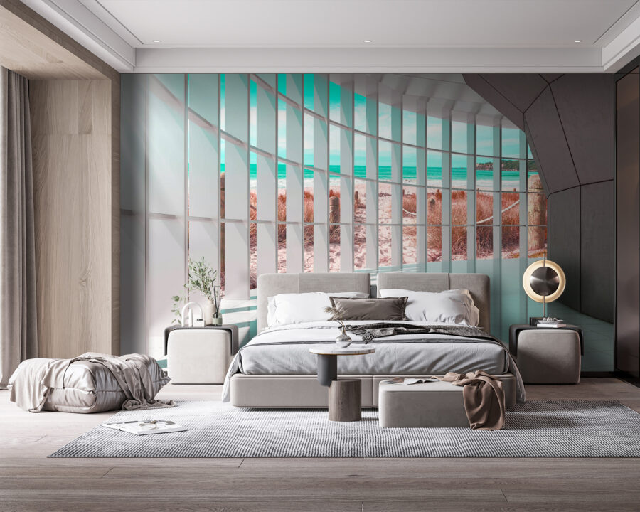 Wyobraź sobie, że wchodzisz do pokoju skąpanego w ciepłym słońcu, gdzie spokojny błękit oceanu wita cię przez eleganckie, nowoczesne okna. Dokładnie to otrzymasz dzięki fototapecie ściennej “Słoneczny pokój z widokiem na ocean”. To nie tylko fototapeta – to mini-wakacje dla twoich ścian! Idealna do dodania odrobiny nadmorskiego spokoju do każdej przestrzeni. Niezależnie od tego, czy jest to salon, czy miejsce do pracy, ten oszałamiający projekt 3D sprawi, że poczujesz się jak na plaży. Prawie słychać fale, prawda? Zanurz się w tym widoku i pozwól, aby kawałek oceanu uspokoił Twój dzień. Piękny i relaksujący, sprawi, że Twój dom poczuje się jak nadmorski raj. 🌊🌞