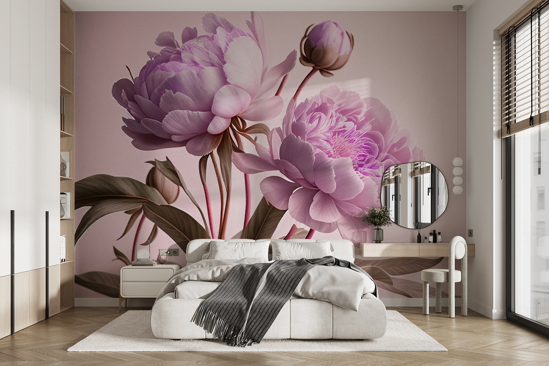 I to nie są zwykłe kwiaty; to piwonie. Znane jako królowe ogrodu, symbolizują romans i dobrobyt. Nie jest to więc tylko ładna buzia – ma znaczenie. Niezależnie od tego, czy jest to przytulny salon, spokojna sypialnia, czy nawet elegancka przestrzeń biurowa, ta fototapeta dodaje odrobinę wyrafinowania z odpowiednią ilością kaprysu.