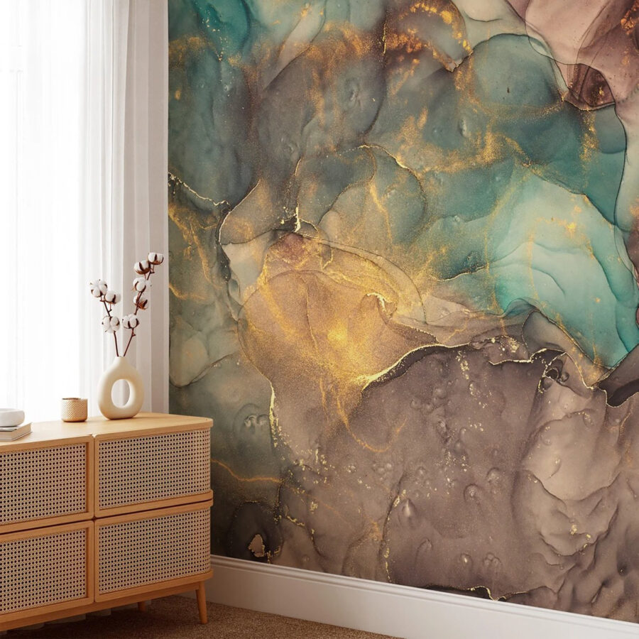 Przekształć nudną ścianę w oszałamiający punkt centralny dzięki fototapecie ściennej przedstawiającej abstrakcyjne marmurowe tekstury i bogate turkusowe akcenty. Wyobraź sobie, że wchodzisz do pokoju, w którym wiry ziemistych odcieni szepczą opowieści o naturze, zapraszając każdego gościa do zatrzymania się i zanurzenia w atmosferze. To jak posiadanie dzieła sztuki, które wciąż ewoluuje – zmień perspektywę, a projekt zatańczy z tobą. Idealna do przytulnego kąta lub odważnej ściany, ta fototapeta dodaje głębi i osobowości. Może po prostu zainspirować chwilę zen po długim dniu. Dlaczego więc nie pozwolić swoim ścianom mówić głośno?