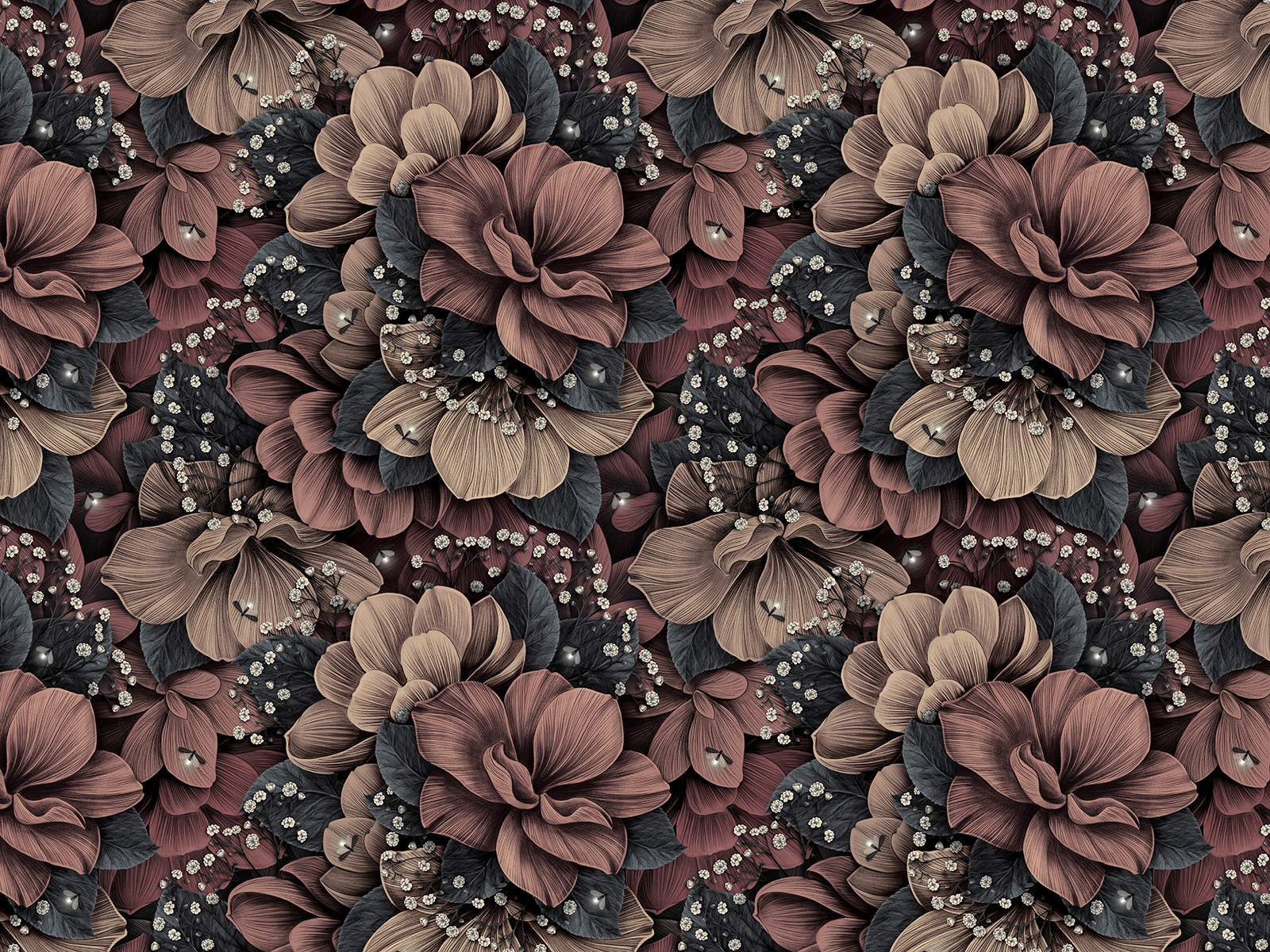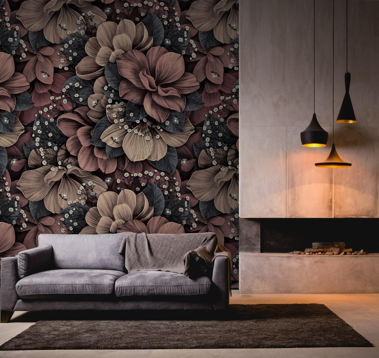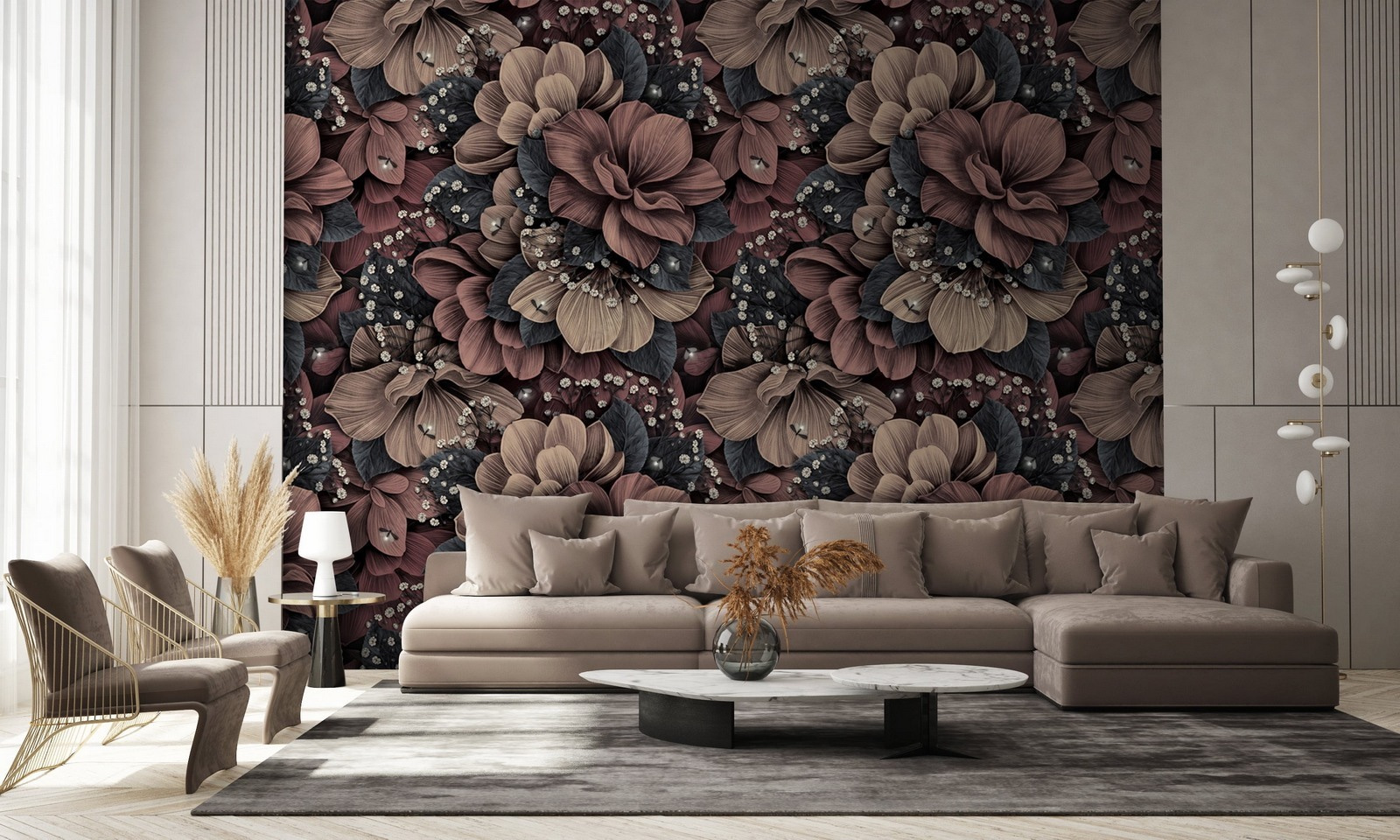 Wyobraź to sobie w swoim salonie: elegancko szczegółowy kwiatowy wzór, który sprawia, że chcesz na niego patrzeć przez cały dzień. Ta fototapeta ma ciepły, skomplikowany wzór, który wydaje się niemal żywy. Bogate kolory pięknie się przenikają, tworząc poczucie głębi, które wciąga. To jak posiadanie bujnego ogrodu bezpośrednio na ścianie, bez konieczności podlewania.