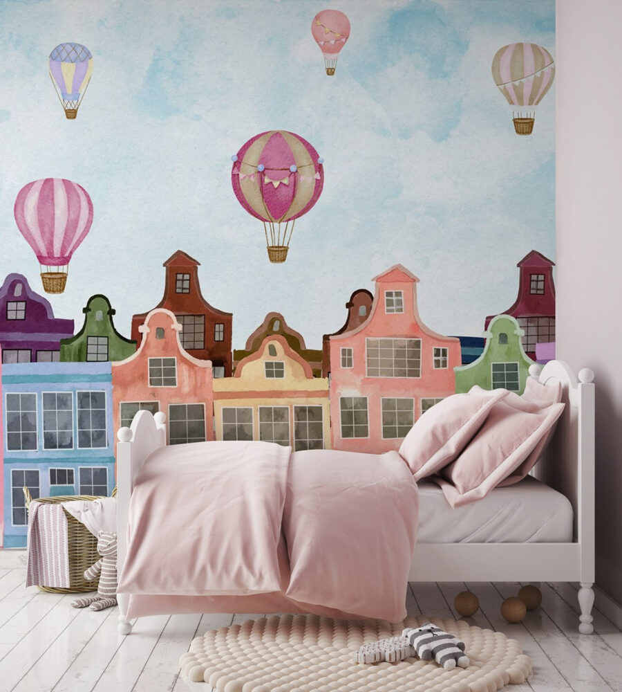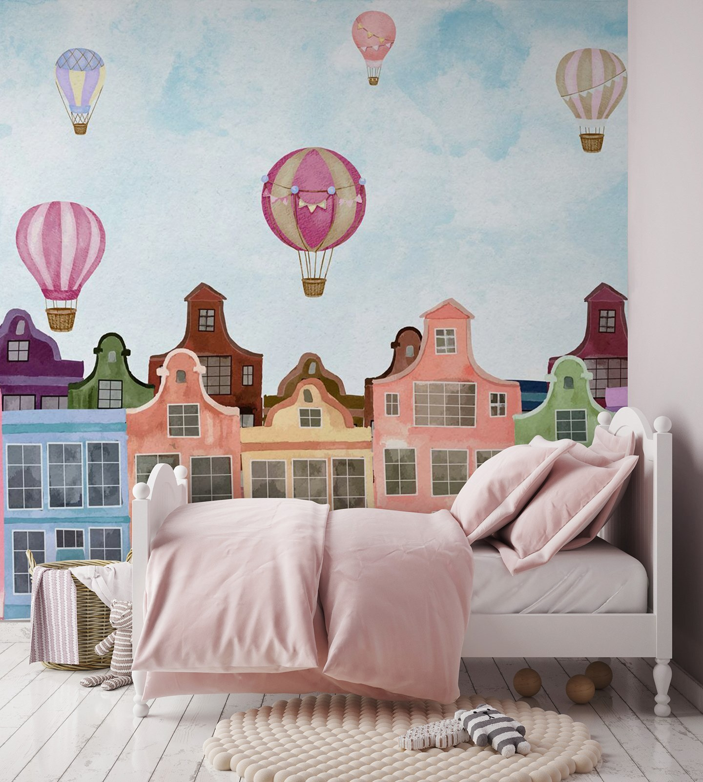 Każde spojrzenie na tę fototapetę może zabrać Cię w małą podróż. Wyobraź sobie, jak popijasz kawę, a te żywe budynki radośnie patrzą na Ciebie, sprawiając, że zwyczajne poranki stają się wyjątkowe. Albo wyobraź sobie, jak to piękno może zainspirować opowiadanie historii podczas rodzinnych spotkań – każdy ma swoją własną przygodę z balonem. Dzięki uroczej mieszance kolorów ta fototapeta bez wysiłku poprawi Ci nastrój, tak jak balony unoszące się w słoneczny dzień. Idealny do przytulnego kącika lub tej jednej ściany, która wydaje się nieco samotna, to nie tylko dekoracja — to doświadczenie, które czeka na realizację.