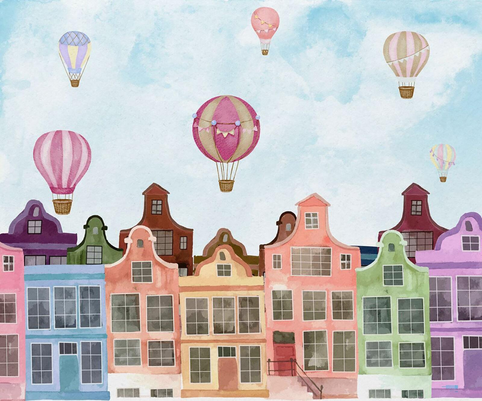 Wprowadź odrobinę fantazji do swojego domu dzięki tej oszałamiającej fototapecie „Grupa budynków z balonami na ogrzane powietrze”. Wyobraź sobie, że wkraczasz do świata, w którym dumnie stoją kolorowe domy, a nad głowami tańczą figlarne balony. To jak wymarzone miejsce na wakacje, które chciałbyś odwiedzić, a które znajduje się w Twoim salonie. Akwarelowy klimat dodaje lekkości, która rozjaśnia każdą przestrzeń i sprawia, że staje się ona nieco bardziej radosna.