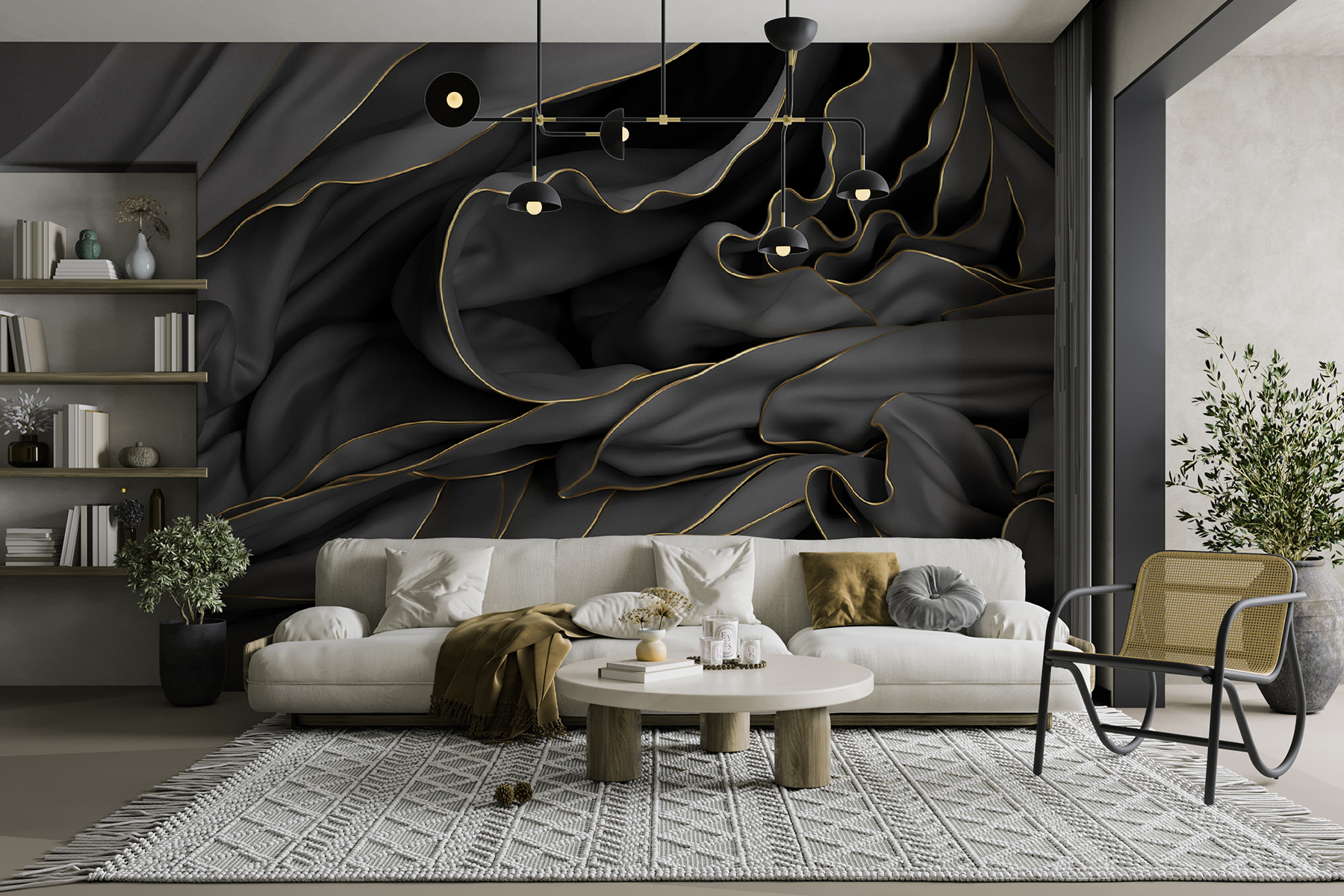 Wyobraź sobie, że wchodzisz do pokoju i natychmiast czujesz ogarniający cię spokój. Ta fototapeta ścienna ożywia tę atmosferę – eleganckie i płynne wzory spacerują po powierzchni, zapraszając do wędrówki po jej wzorach. Jest jak przytulny uścisk, idealny do nadania każdej przestrzeni wyjątkowego charakteru. Niezależnie od tego, czy jest to elegancki salon, czy spokojna sypialnia, ta fototapeta przekształca ściany w sztukę, tworząc tło dla wspomnień. Niektórzy mogą nawet zatracić się w myślach, podziwiając wdzięczne krzywizny, popijając kawę lub czytając ulubioną książkę. Chodzi o przekształcenie zwykłej przestrzeni w coś magicznego!