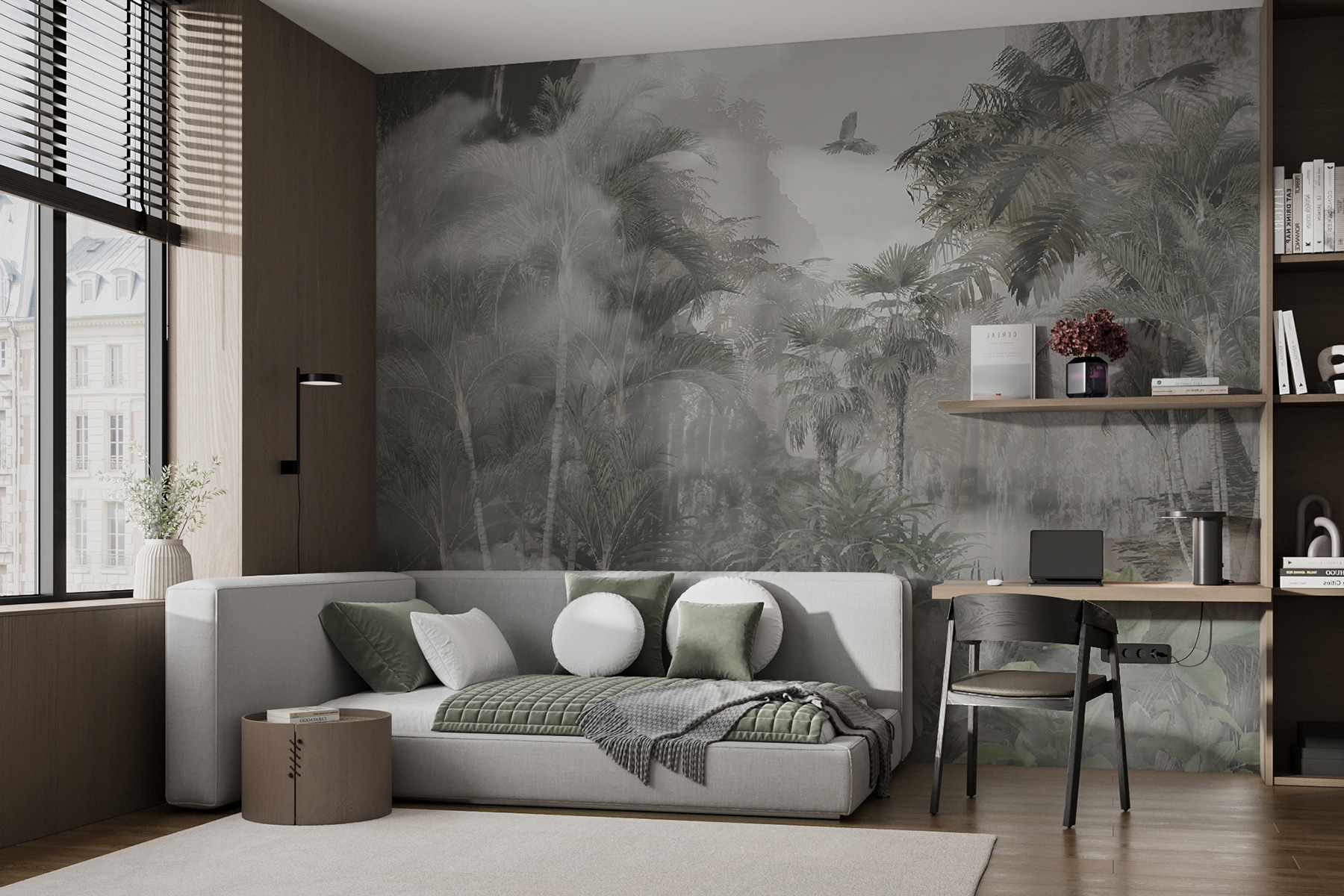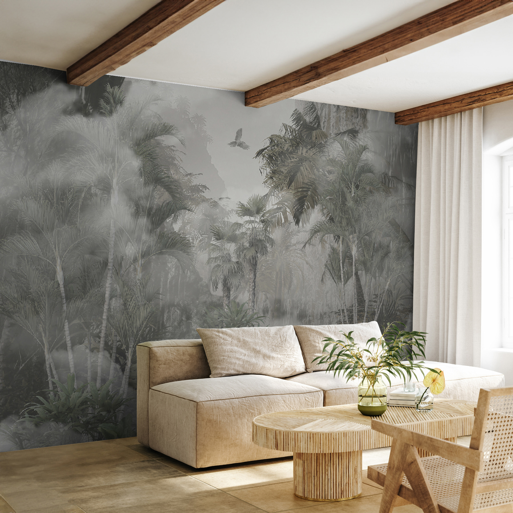 Idealna do salonu, sypialni, a nawet przytulnego kącika do czytania, ta fototapeta dodaje spokojnej, niemal pokojowej energii do każdego pomieszczenia. Goście mogą zrobić podwójne spojrzenie, zastanawiając się, czy nie natknęli się na egzotyczną ucieczkę. I szczerze mówiąc, trudno nie zatracić się w szczegółach, dostrzegając nowe liście lub subtelną zmianę światła za każdym razem, gdy patrzysz.