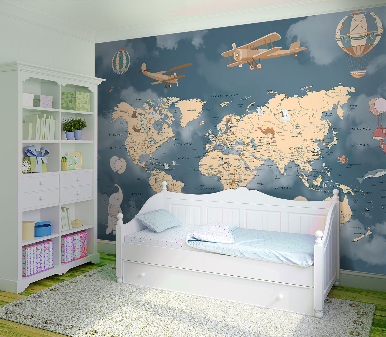 Czy kiedykolwiek marzyłeś o szybowaniu w przestworzach balonem na ogrzane powietrze, ale wiesz, w zaciszu własnego domu? Cóż, ta fototapeta ścienna jest dla ciebie. “Hot Air Balloon in the Sky” przekształca zwykłą ścianę w kapryśną mapę świata, wraz z unoszącymi się balonami i uroczymi zwierzętami. To jak mini przygoda dla dzieci – i szczerze mówiąc, sprawia, że chcesz do nich dołączyć, prawda? Idealny do rozbudzenia ciekawości i nadania każdemu pomieszczeniu zabawnego, marzycielskiego klimatu. Wyobraź sobie bajki na dobranoc lub zabawę z takim tłem – nieskończone możliwości! Sprawia, że lekcje geografii przypominają wycieczki dookoła świata. Pokochają ją odkrywcy w każdym wieku.