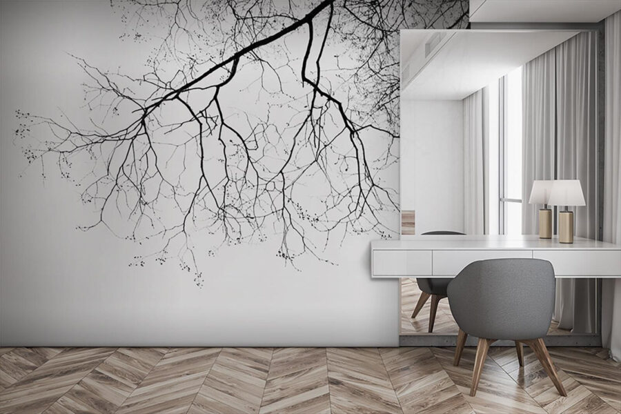 Chcesz dodać odrobinę natury do swojej przestrzeni bez bałaganu związanego ze spadającymi liśćmi? Sprawdź tę oszałamiającą fototapetę przedstawiającą nagie gałęzie tworzące skomplikowane wzory. To jak przeniesienie spokoju śnieżnego gaju do swojego salonu. Przyjemna dla oka i pełna subtelnego dramatyzmu, sprawia wrażenie chwili zamrożonej w czasie, takiej, którą skrycie masz nadzieję zamienić w ducha drzewa.