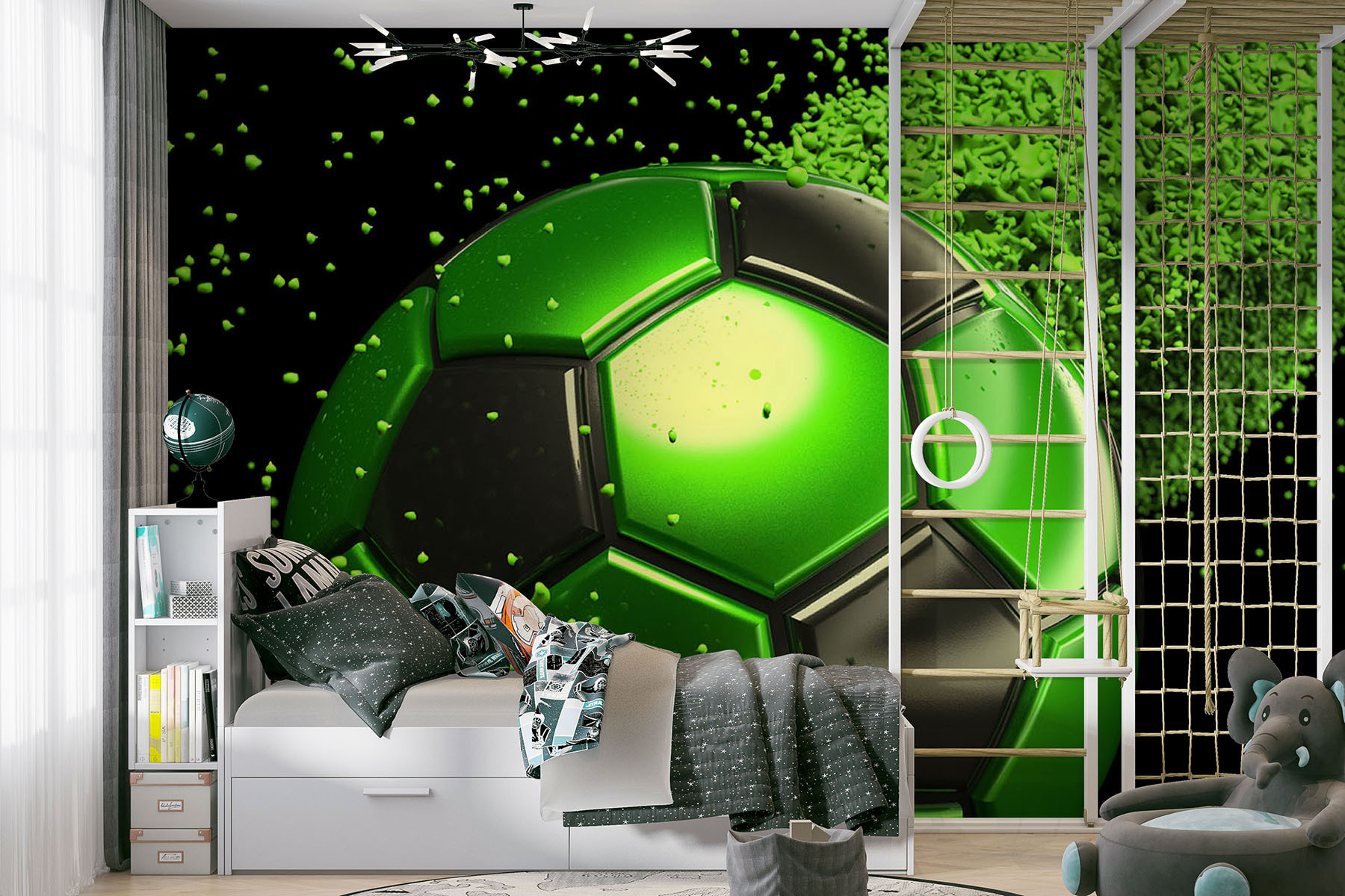 Odmień każdą przestrzeń dzięki tej zabawnej fototapecie przedstawiającej zielone i czarne sześciokąty posypane drobnymi kropkami. To jak eksplozja energii, która przenosi emocje z boiska piłkarskiego prosto do Twojego domu. Wyobraź sobie: przyjaciele zbierają się w dniu meczu, a zamiast gołych ścian wita ich ten żywy wzór. To idealne tło dla ożywionych dyskusji, a może nawet małej przyjacielskiej rywalizacji. Żywe kolory sprawią, że będziesz marzyć o zwycięskich bramkach i ekscytujących chwilach. Spraw, by o twoich ścianach mówiło całe miasto i daj się ponieść dobrym nastrojom!