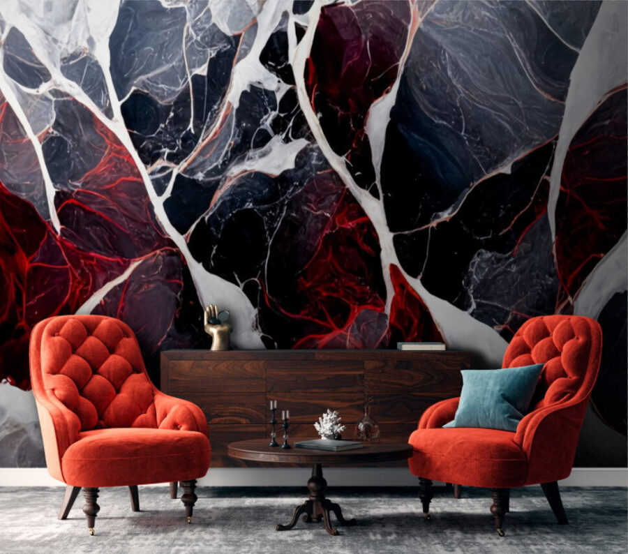 Czy kiedykolwiek myślałeś, że Twoja ściana może być czymś więcej niż tylko, no wiesz, ścianą? Pozwól, że przedstawię Ci to czerwono-czarne arcydzieło. To jak posiadanie dzieła sztuki abstrakcyjnej w swoim salonie, z tą różnicą, że nie musisz być przy tym elegancki. Ta fototapeta łączy głęboką czerń, przydymione szarości i ogniste czerwienie w sposób, który po prostu krzyczy “Jestem o wiele fajniejszy niż pomalowana ściana”. Wyobraź sobie: wracasz do domu po długim dniu, a zamiast nudnego beżu wita Cię ten odważny wzór, który jednocześnie dodaje energii i pociesza. Ma ten dramatyczny marmurowy charakter bez chłodnego dotyku – idealny do przytulnych zakątków lub ściany, która potrzebuje nieco więcej… oomph. Zmień swoją przestrzeń w galerię lub po prostu miejsce, w którym rozmowy zaczynają się same. Śmiało, zagub się w jego głębi!