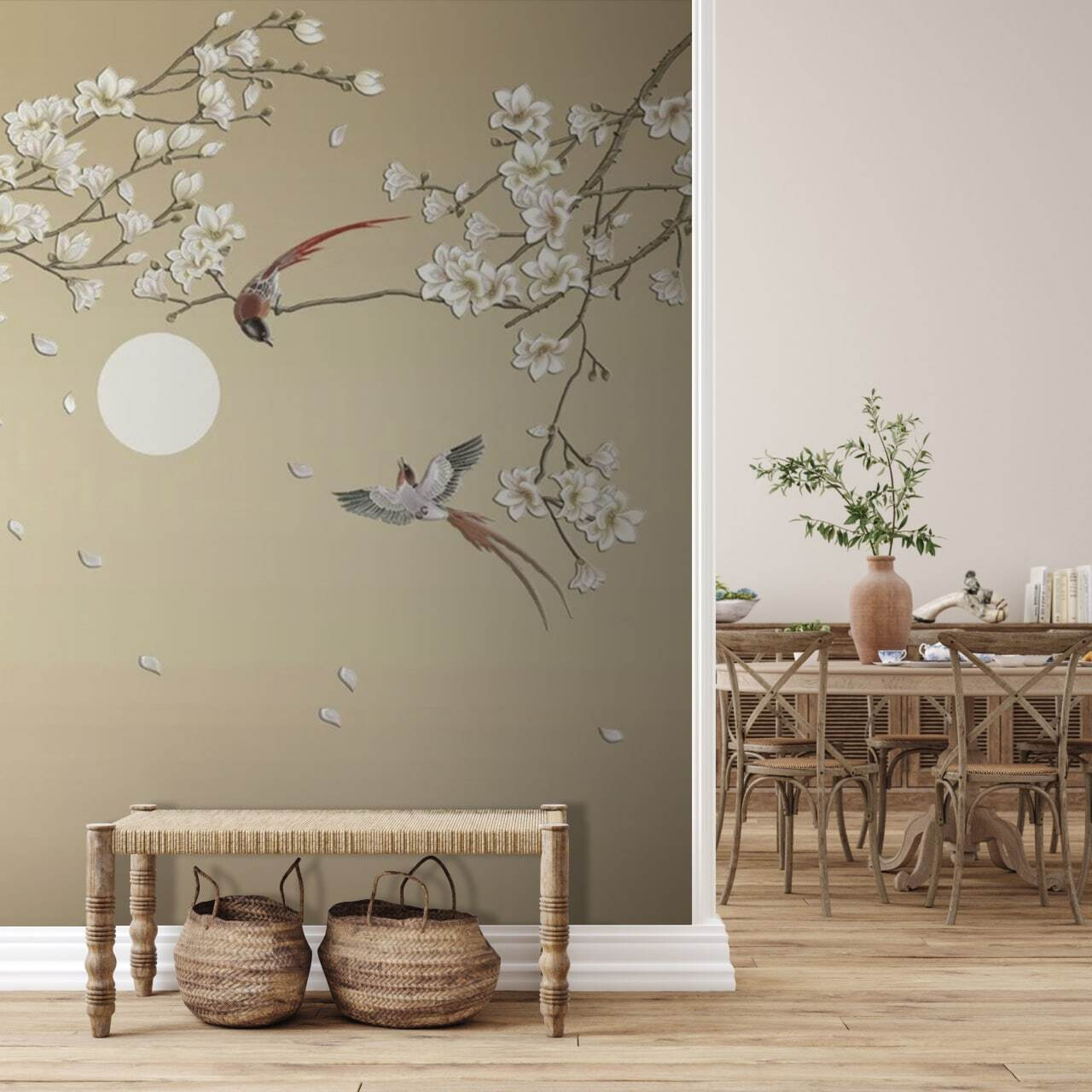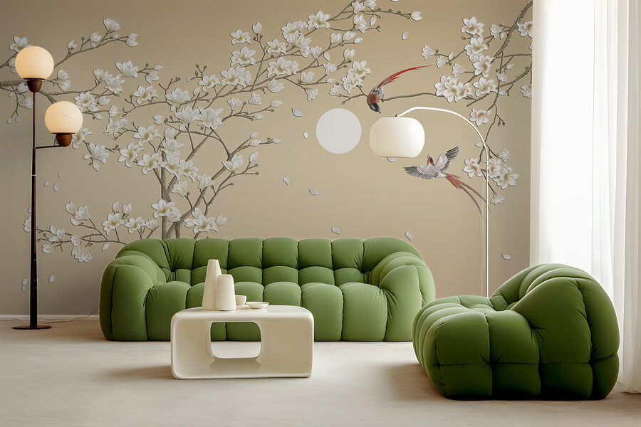 Przygotuj się na odmienienie swojej przestrzeni dzięki fototapecie ściennej “Bird Flying in the Air”. Wyobraź sobie spokojne piękno natury w swoim salonie – delikatne gałęzie drzew ozdobione miękkimi kwiatami i dwa ptaki radośnie szybujące na uspokajającym tle. Idealna, aby dodać odrobinę spokoju i elegancji do każdego pomieszczenia, ta fototapeta bez wysiłku wprowadza do wnętrza to, co na zewnątrz.