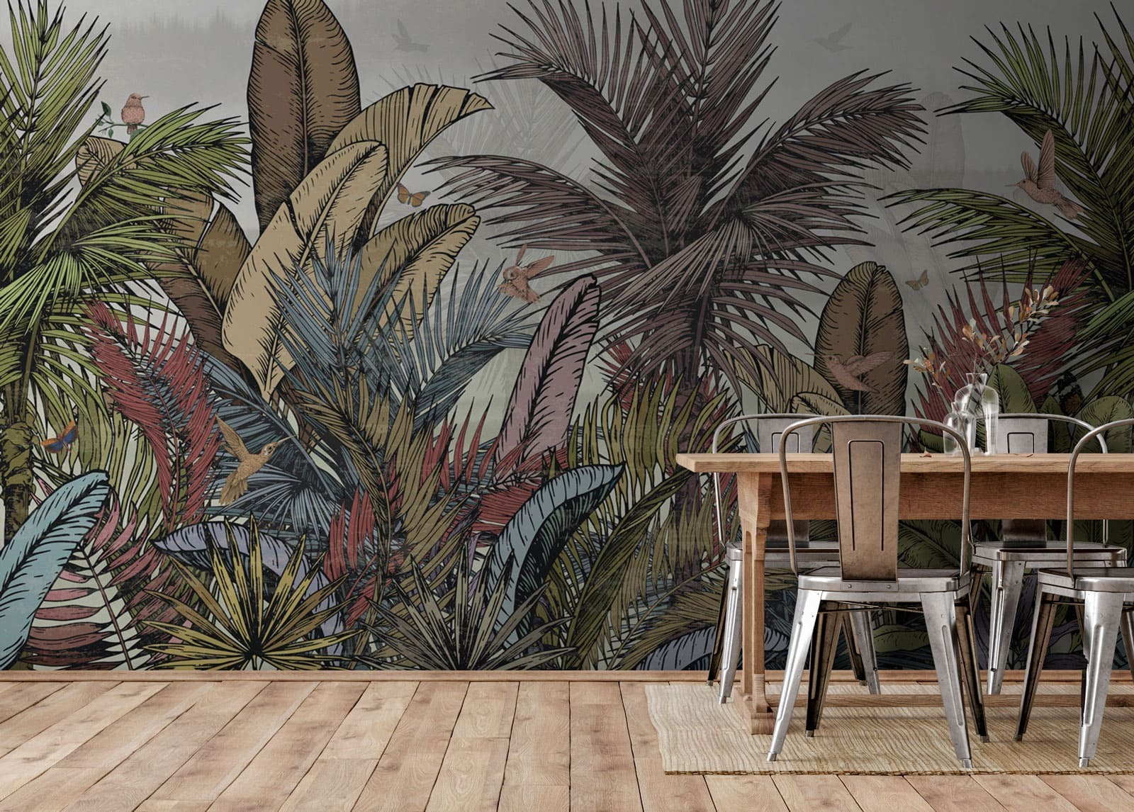 Step into your very own jungle with the “Group of Tropical Plants” mural! This piece, bursting with color and life, brings the soothing vibes of nature right to your walls. Imagine waking up and feeling like you’re in a lush paradise—birds flitting about, leaves rustling gently. It’s got that laid-back vibe that says, “Hey, relax! You’re on island time now.” Perfect for a living room, lounge, or even a cozy reading nook. Friends might just wonder if you’ve taken up residence in a botanical garden! Pair it with some greenery, and you’ve got a mini oasis that’ll make everyone feel like they’ve escaped to a tropical getaway. Bring on the good times!