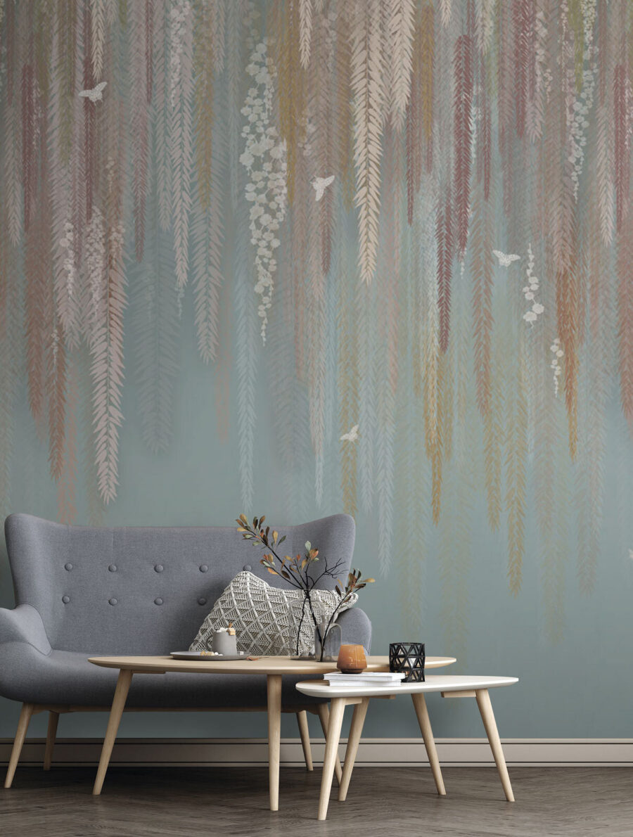 Ta urocza fototapeta, z mieszanką kwiatowych i liściastych wzorów, jest prawie jak szept wiosny – sprawia, że chcesz się przytulić z książką i filiżanką herbaty. To nie tylko dekoracja; to doświadczenie podnoszące nastrój.