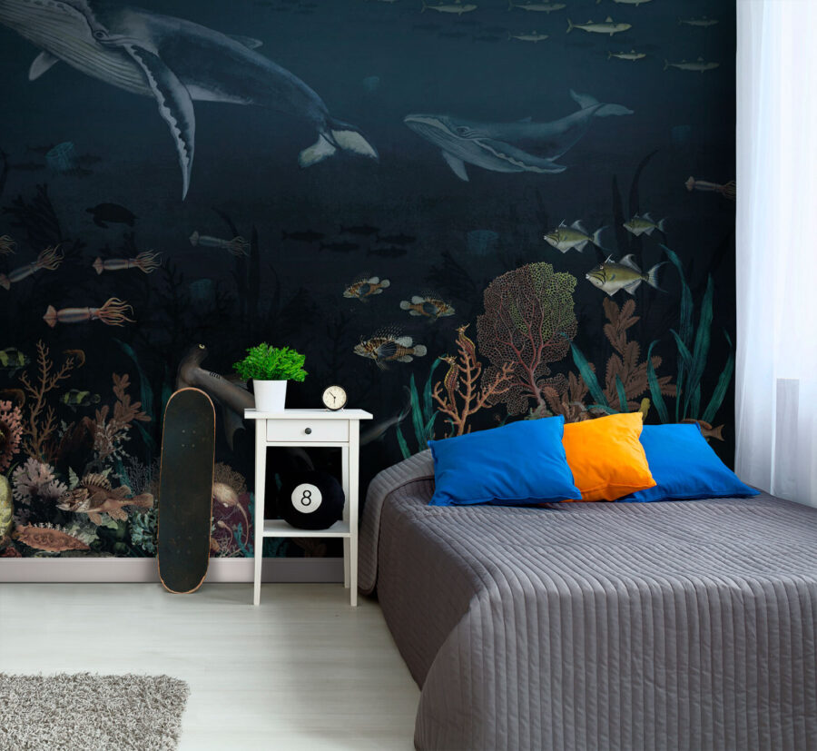 Zanurz się w świecie cudów dzięki tej urzekającej fototapecie ściennej przedstawiającej wieloryby szybujące z gracją w głębinach! Wyobraź to sobie – wchodzisz do pokoju, a tam majestatyczny wieloryb płynie obok kolorowych ryb, żółwi morskich i żywych koralowców. Przynosi natychmiastowe poczucie spokoju i przygody. Idealna do pokoju dziecięcego lub przestrzeni inspirowanej morzem, ta fototapeta pobudza wyobraźnię i sprawia, że marzysz o oceanicznych eskapadach. Wyobraź sobie historie, które może opowiedzieć! Niezależnie od tego, czy jest to czas zabawy, czy przytulne łóżko, ta fototapeta tworzy scenę dla niezliczonych wodnych przygód – a kto nie chciałby tej magii na swoich ścianach? Poczujesz się, jakbyś miał kawałek oceanu w swoim domu.