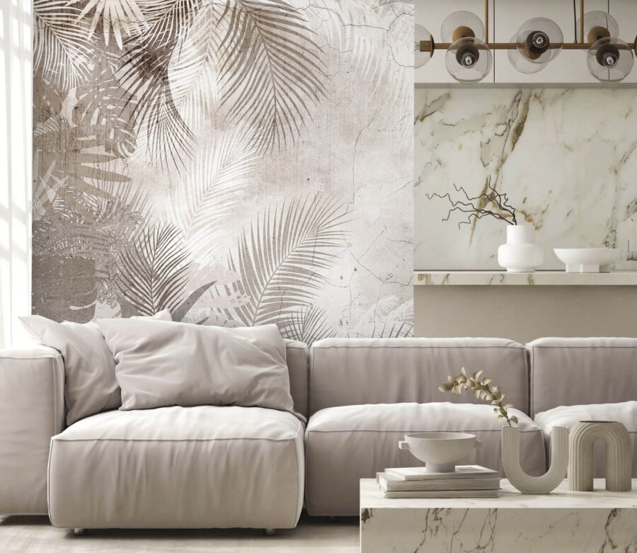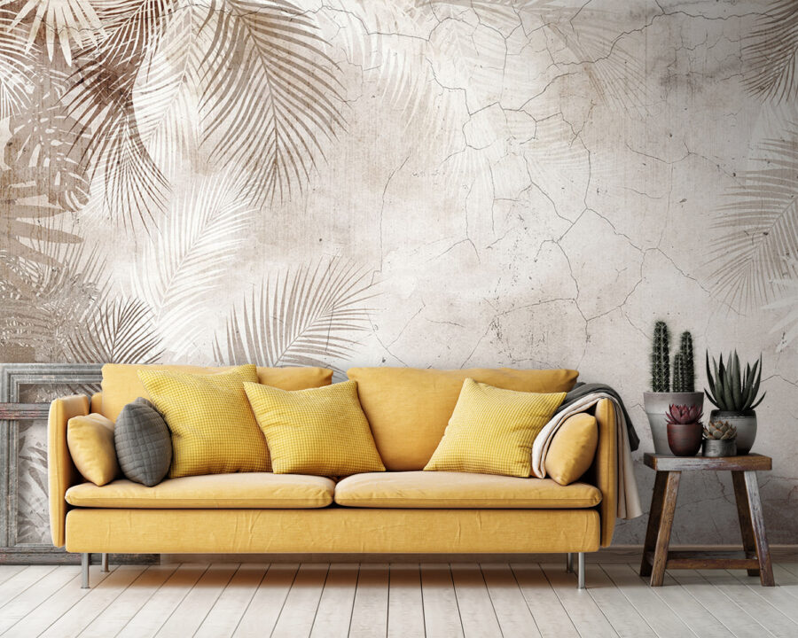 Przekształć swoją przestrzeń w bujną oazę dzięki tej fototapecie ściennej z tropikalnymi liśćmi na subtelnie postarzanym tle. Wyobraź sobie, że wchodzisz do spokojnej dżungli za każdym razem, gdy wchodzisz do pokoju – miękkie zielenie i ziemiste odcienie tworzą uspokajającą atmosferę, która zachęca do relaksu. To jak przeniesienie się na zewnątrz bez uciążliwych owadów. Idealna do przytulnego kącika do czytania lub tętniącej życiem kuchni, ta fototapeta wywołuje radość i rozmowy. Kto nie chciałby porozmawiać o swoich najnowszych wskazówkach dotyczących pielęgnacji roślin w otoczeniu tak odświeżającego tła? Jest to sztuka, która sprawia wrażenie uścisku natury, dzięki czemu każdy obszar czuje się nieco bardziej wyjątkowy – jakby natura nagle zdecydowała się dołączyć do twojego domu.