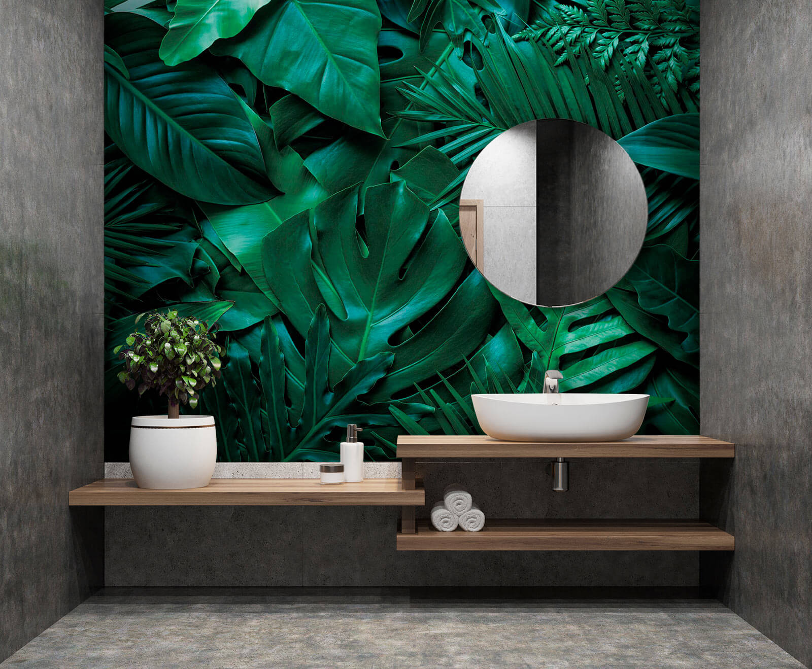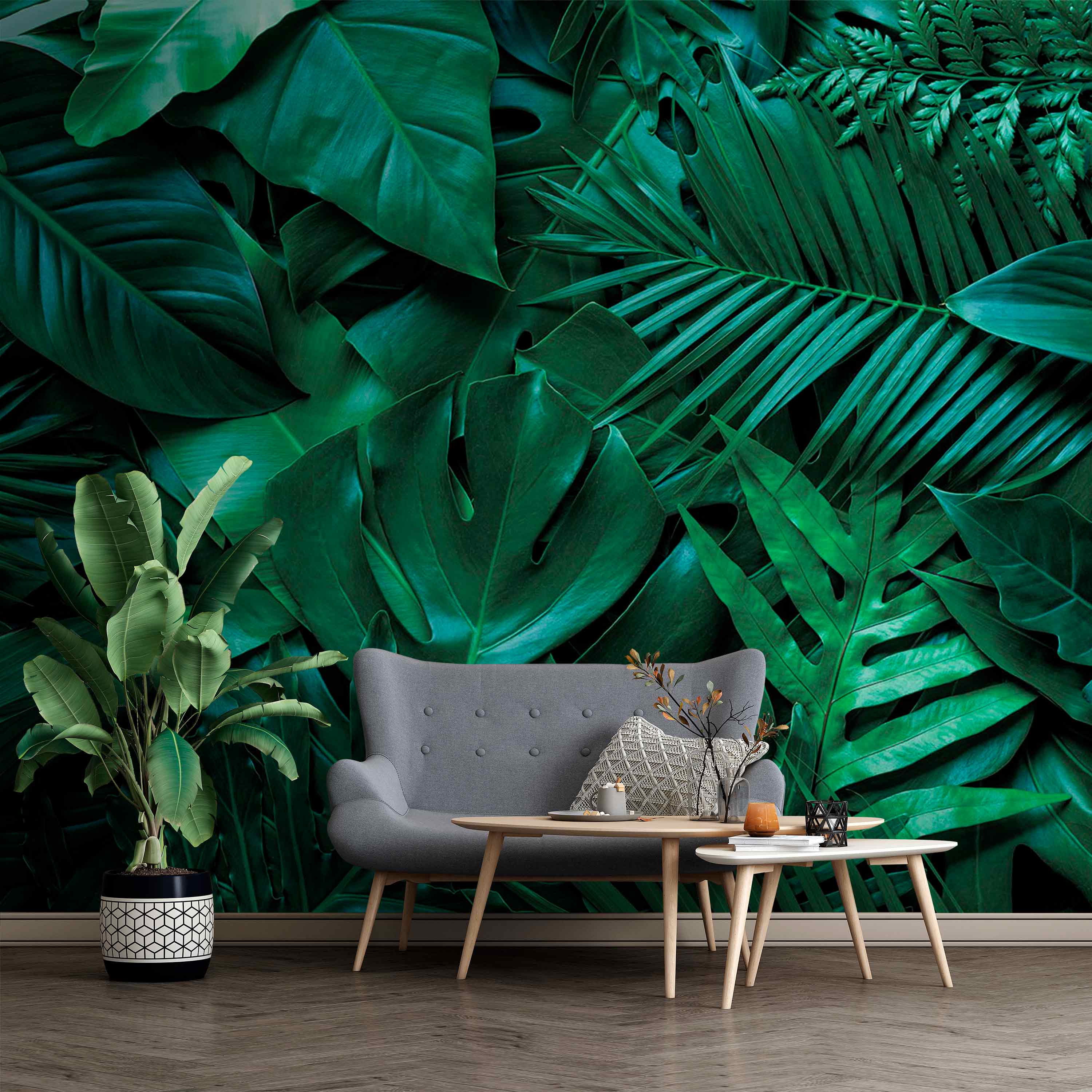 Ta fototapeta to nie tylko dekoracja, ale także poprawia nastrój! Dzięki bogatej fakturze liści wydaje się niemal trójwymiarowa, przyciągając wzrok i pobudzając do rozmowy. Niezależnie od tego, czy chcesz stworzyć spokojną atmosferę w sypialni, czy ożywić przytulny kącik, ta fototapeta wprowadzi do wnętrza odrobinę natury. Jest orzeźwiający, uspokajający i niezaprzeczalnie szykowny. Dlaczego więc nie zamienić tych ponurych ścian w zieloną oazę? Przygotuj się jednak – przyjaciele mogą zacząć oczekiwać, że będziesz organizować egzotyczne spotkania!