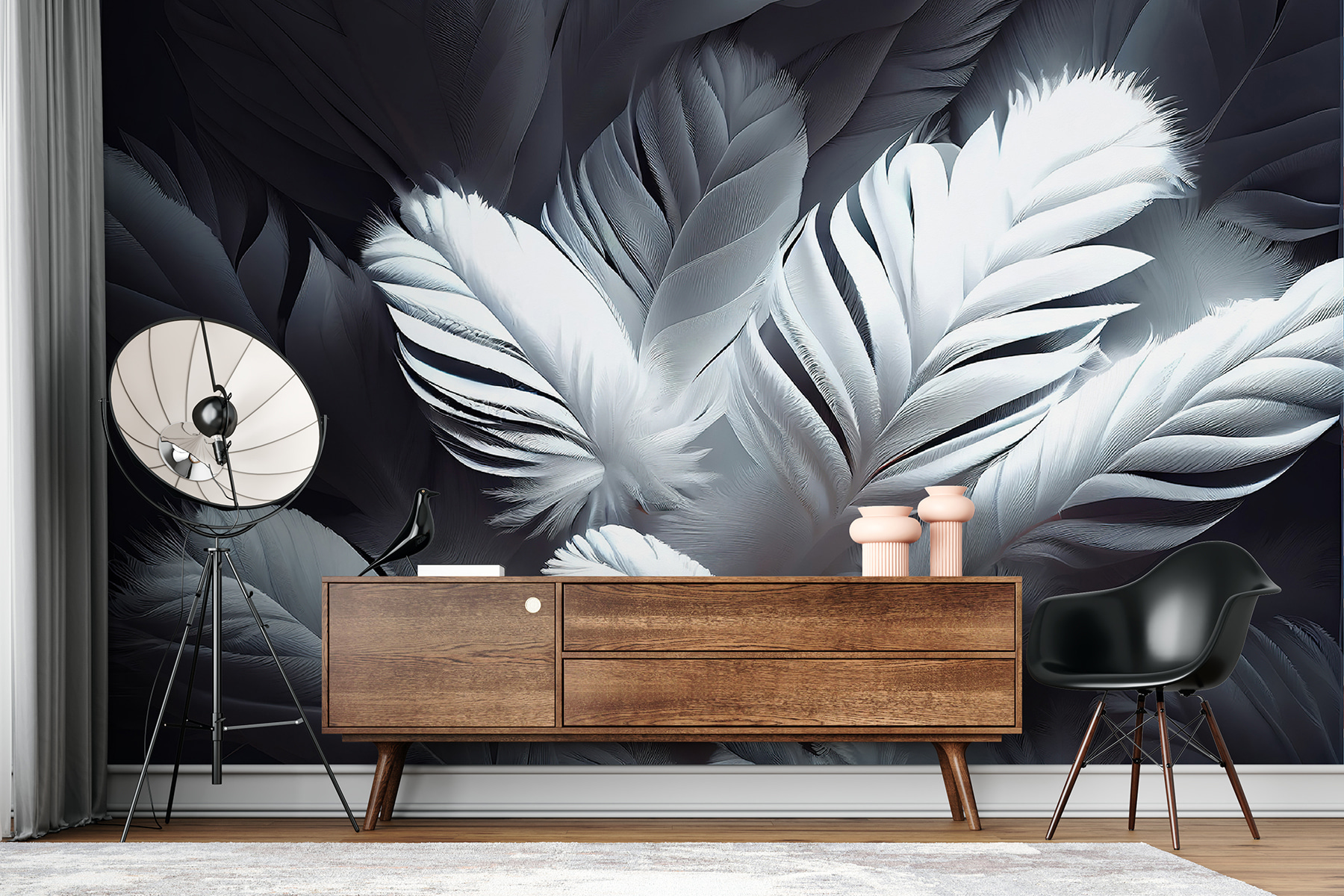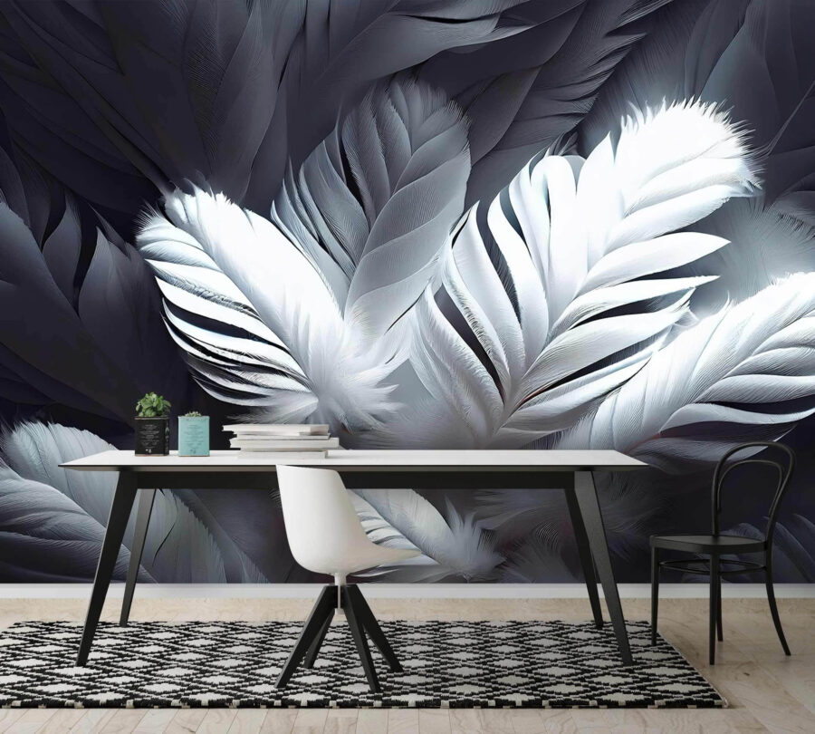 Odmień pomieszczenie dzięki dekoracji “Soft White Feathers in Gentle Layers”, w której elegancja łączy się z kaprysem. Wyobraź sobie, że wchodzisz do przestrzeni, która jest lekka jak szept, z delikatnymi piórami tańczącymi po ścianach. Ta fototapeta dodaje marzycielskiego akcentu, sprawiając, że nawet najbardziej pracowity dzień wydaje się nieco spokojniejszy. Wyobraź sobie przytulne wieczory spędzone w inspirowanej piórami przystani, popijając herbatę i zatracając się w dobrej książce. To jak przeniesienie nieba do domu – niezły pomysł, prawda? Z każdym spojrzeniem ta fototapeta delikatnie zachęca do relaksu, sprawiając, że dom czuje się trochę bardziej wyjątkowy.