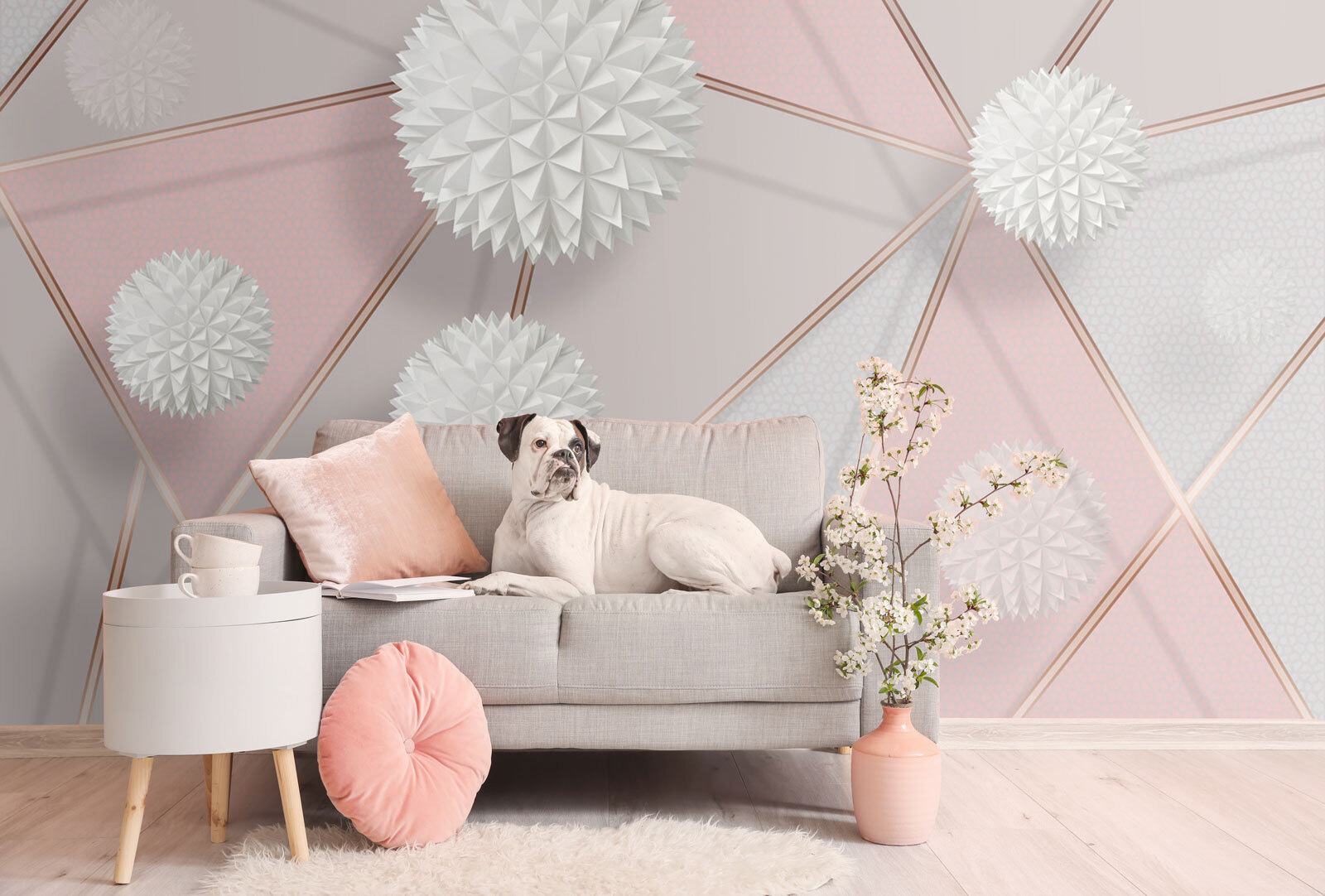 Przekształcenie przestrzeni nie musi być trudnym zadaniem – wystarczy spojrzeć na tę „Fototapetę z geometrycznym wzorem w kolorze białym i różowym”. Jest ona jak powiew świeżego powietrza na ścianie. Dzięki zabawnym geometrycznym kształtom w delikatnych odcieniach różu i bieli ta fototapeta może rozjaśnić każde pomieszczenie, zamieniając zwyczajną chwilę w małą uroczystość designu. Wyobraź sobie, że popijasz kawę w pomieszczeniu, w którym te trójwymiarowe kształty tańczą i migoczą w słońcu. Jest to eleganckie, a jednocześnie zaskakująco kojące tło, idealne do ożywionych rozmów lub przytulnych wieczorów. Goście będą pytać: „Gdzie to znalazłeś?”. Przygotuj się na zdradzenie sekretu!