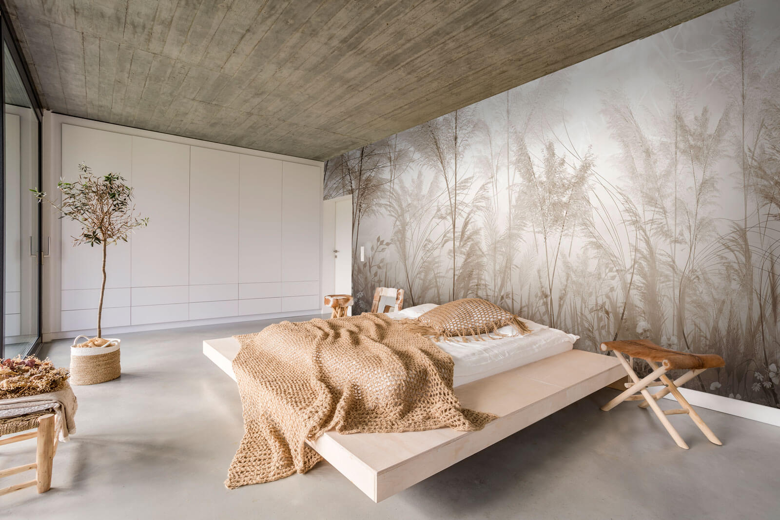 Ziemiste odcienie tej fototapety tworzą kojące tło, dzięki czemu można ją łatwo łączyć i dopasowywać do ulubionego wystroju. Wyobraź sobie parującą filiżankę herbaty w dłoni, gdy zapadasz się w wygodnym fotelu, całkowicie pochłonięty dobrą książką. Subtelne piękno trawy tańczy figlarnie w świetle i być może, tylko być może, inspiruje do chwili marzeń. To rodzaj sztuki, która sprawia, że zwykła ściana wygląda jak scena prosto ze spokojnej wsi. Podaruj swoim ścianom powiew świeżości!