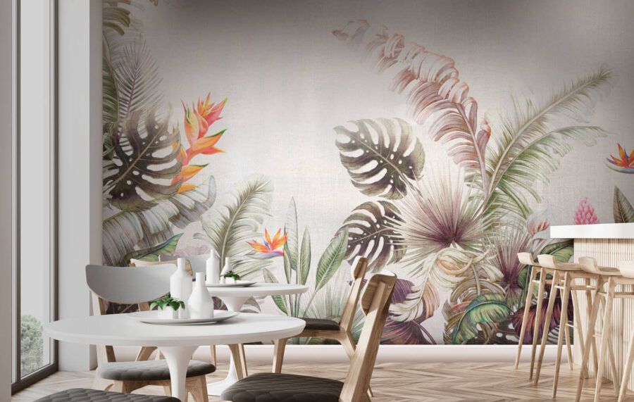 Przekształć każdą przestrzeń w tętniącą życiem oazę dzięki tej oszałamiającej fototapecie ściennej z tropikalnymi liśćmi i żywymi kwiatami. Wyobraź to sobie – każdy liść i kwiat tańczy kolorem, wnosząc odrobinę raju do salonu. Wyobraź sobie, że budzisz się w tym tropikalnym miejscu; to jak codzienne wakacje. Bogata zieleń i wybuchy ognistych kwiatów tworzą poczucie ciepła i radości, które ożywią każdą ścianę. Idealna do przytulnego kącika lub jako wyrazista ściana, ta fototapeta wnosi orzeźwiającą energię, która z pewnością sprawi, że goście zatrzymają się i będą ją podziwiać. Kto wie, może nawet wywoła kilka marzeń o piaszczystych plażach i ciepłej bryzie!