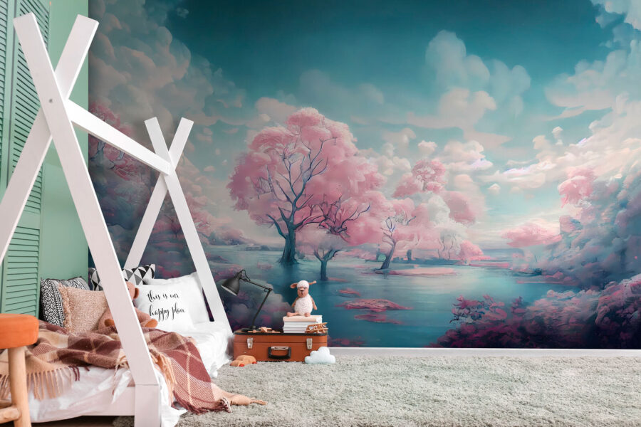 Odmień przestrzeń dziecka dzięki tej czarującej fototapecie przedstawiającej błękitne niebo usiane puszystymi chmurami. To jak weekendowy spacer po sennym krajobrazie – idealny do pobudzenia wyobraźni. Delikatne błękity i biele tworzą uspokajającą atmosferę, która może inspirować marzenia o puszczaniu latawców lub piciu herbaty z chmurkami. Dzieci mogą wpatrywać się w swoje nowe niebo i poczuć się jak poszukiwacze przygód w wielkiej opowieści. Ponadto, jest to fantastyczne tło dla opowiadań lub projektów artystycznych. Któż nie chciałby mieć czegoś takiego? Czas dodać trochę magii do tych ścian!