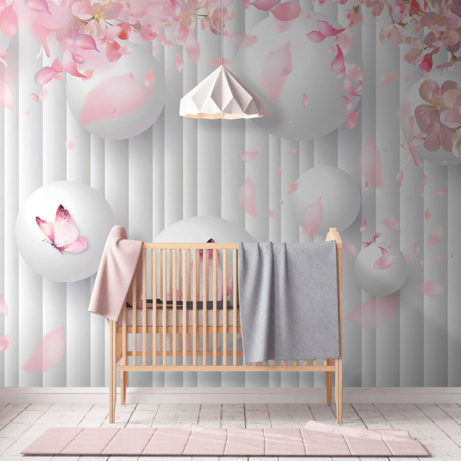 Zmień tę zwykłą ścianę w dzieło sztuki dzięki tej uroczej fototapecie, przedstawiającej fantazyjny taniec białych kul ozdobionych uroczymi różowymi motylami. Wyobraź sobie, że popijasz poranną kawę w przestrzeni przypominającej spokojny japoński ogród, a każde spojrzenie na ścianę wywołuje odrobinę radości. Delikatne płatki unoszące się w powietrzu przywołują przyjemne uczucie wiosny, wprowadzając ciepłą, radosną atmosferę. To jak posiadanie natury w domu, bez alergii na pyłki! Idealny do każdego pomieszczenia, które potrzebuje odrobiny spokoju i kreatywności — przygotuj się na lawinę komplementów! Ta fototapeta to nie tylko dekoracja, ale także środek poprawiający nastrój.
