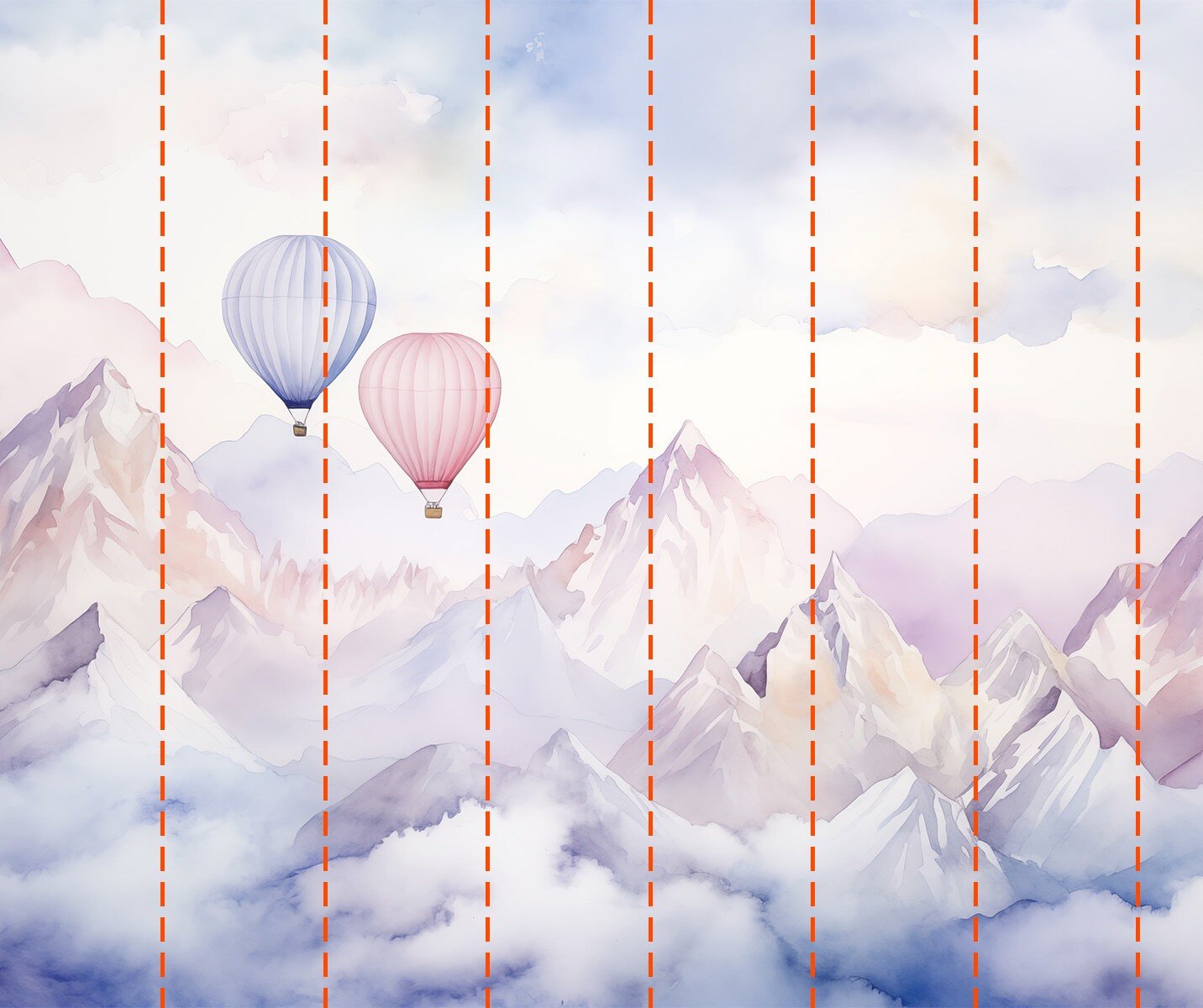 Fototapeta Grupa balonów na ogrzane powietrze na niebie nad górami