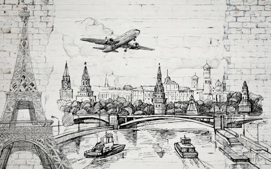 Transform a plain wall into a conversation starter with this striking wall mural, featuring a sketch-style cityscape and an iconic bridge. It’s like taking a mini vacation each time you step into the room—who doesn’t want a view of the Eiffel Tower and the Kremlin? Imagine sipping your morning coffee, daydreaming about travels, or planning your next adventure. The black-and-white design adds a chic vibe, making it easy to match with any decor. Plus, it’s sure to spark curiosity—your friends might think you’ve just come back from a whirlwind tour! A splash of culture on your wall—perfect for those wanderlust-filled hearts.
