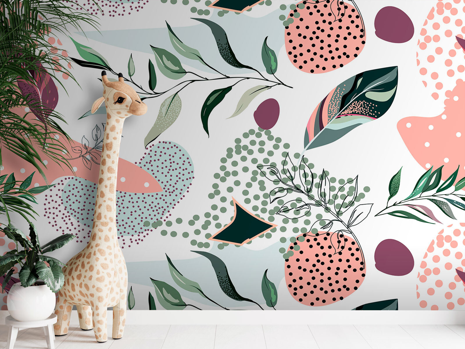 Widziałeś kiedyś fototapetę i czujesz, że wnosi ona powiew świeżości do pomieszczenia? Dokładnie to robi ten wzór Abstract Leaves and Dots. To zabawny taniec liści i kapryśnych kropek, idealny do wywołania odrobiny radości w pokoju dziecięcym. Wyobraź sobie swoją córkę budzącą się przy tym wesołym zestawie pastelowych kształtów, które natychmiast rozjaśniają jej poranek. A może twój syn może marzyć o przygodach wśród abstrakcyjnych liści.