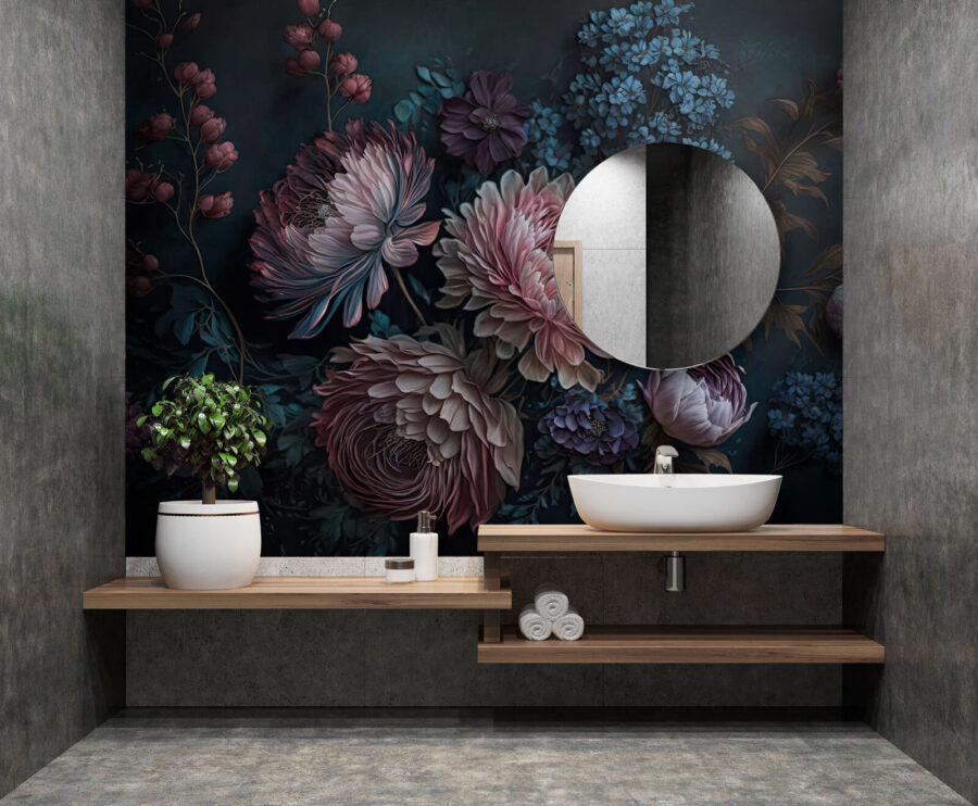Przekształć nudną ścianę w botaniczną krainę czarów dzięki tej tętniącej życiem kwiatowej fototapecie. Wyobraź sobie bujne kwiaty w bogatych, ciemnych odcieniach, zapraszające do przytulnej atmosfery, która przypomina sekretny ogród – idealny do marzeń na jawie lub przemykania w cichej chwili. Wyobraź sobie, że organizujesz spotkanie i wszyscy rozmawiają o tych wspaniałych płatkach. Sposób, w jaki kolory tańczą ze światłem, sprawi, że będziesz chciał usiąść i popijać herbatę godzinami. Świetny początek rozmowy! Twoje ściany zasługują na odrobinę miłości, a ta fototapeta może być przepustką do nieoczekiwanego, pięknego połączenia.