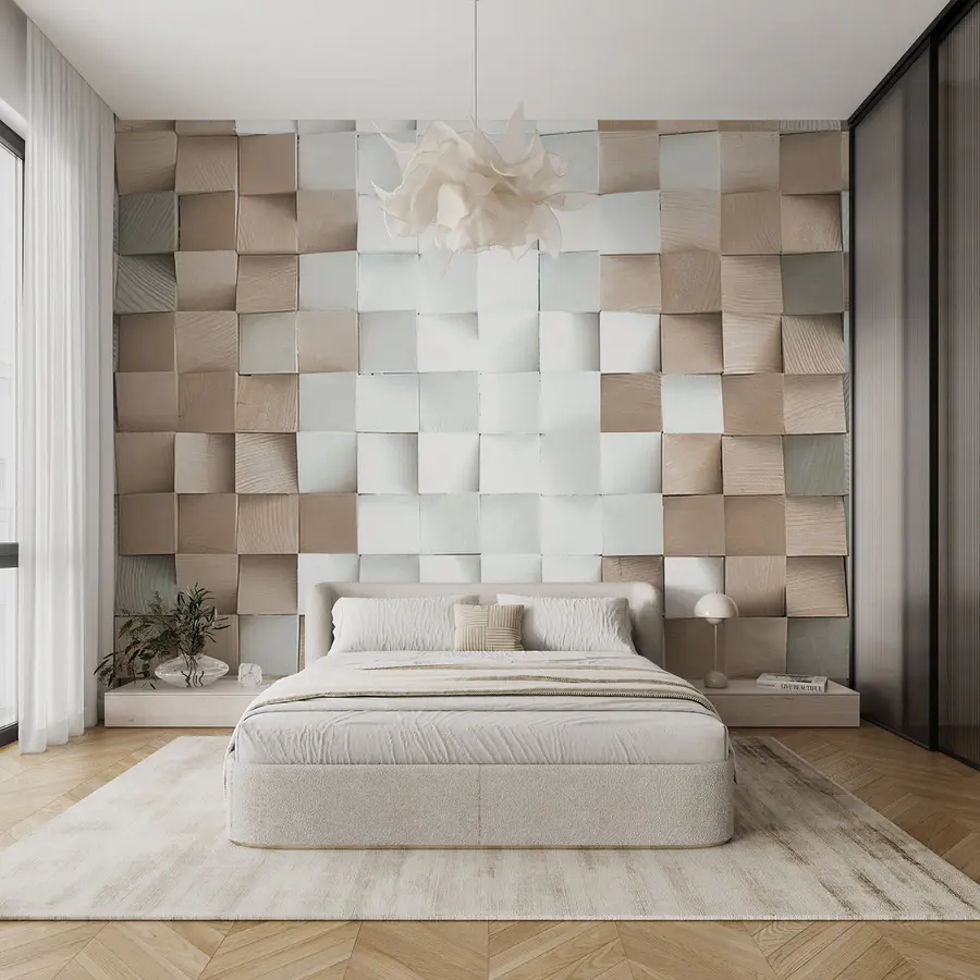 Przekształć zwykłą ścianę w przytulne miejsce dzięki tej uroczej fototapecie. Wyobraź sobie, że wchodzisz do świeżego i przestronnego pokoju, w którym delikatne beżowe i białe wzory grają ze sobą, jakby prowadziły przyjazną rozmowę. Geometryczny wzór wnosi subtelną głębię, która przyciąga wzrok, ale nie krzyczy o uwagę – równowaga, która czyni go idealnym do każdej przestrzeni. Niezależnie od tego, czy jest to salon, w którym zbierają się przyjaciele, czy spokojna sypialnia, ta fototapeta zaprasza do ciepła i odrobiny wyrafinowania. To tak, jakby urządzić na ścianie małe przyjęcie przebierańców – nie jest wymagany wyszukany strój! Niech ta fototapeta będzie tłem dla śmiechu, dobrych książek lub spokojnych chwil z filiżanką herbaty, tworząc przestrzeń, która jest tak samo żywa lub wyluzowana jak ty. Prosta, zachęcająca i całkowicie zachwycająca, jest wszystkim, czym powinna być ściana.