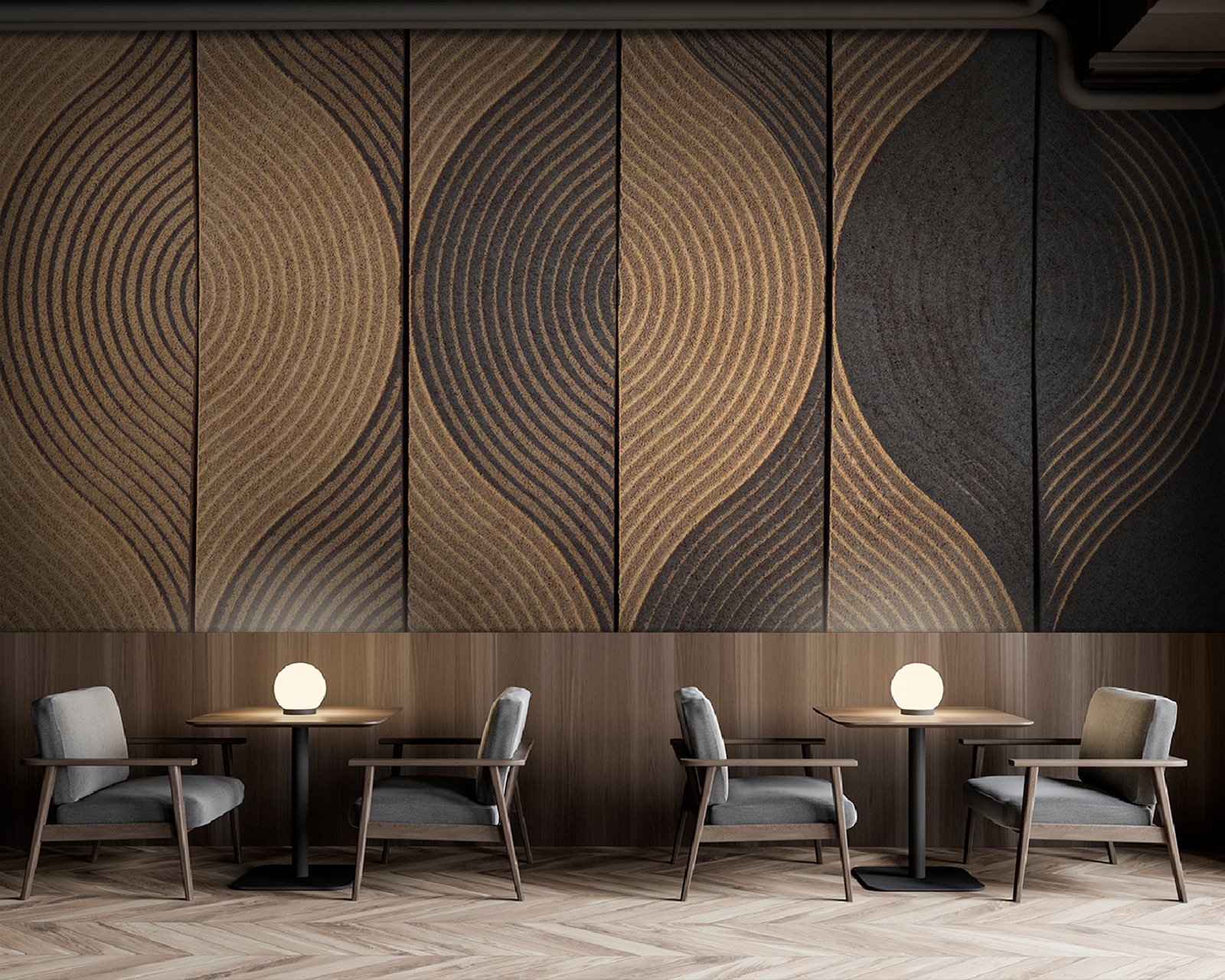 Wyobraź sobie, że odpoczywasz w pokoju ze ścianami, które natychmiast wprowadzają cię w spokojny, ziemski nastrój – to właśnie robi ta fototapeta. Dosłownie, to jak mieć ogród zen na ścianie. Te faliste wzory na drewnianych panelach tworzą wspaniały, naturalny rytm, który po prostu wciąga. To trochę hipnotyzujące, prawda?