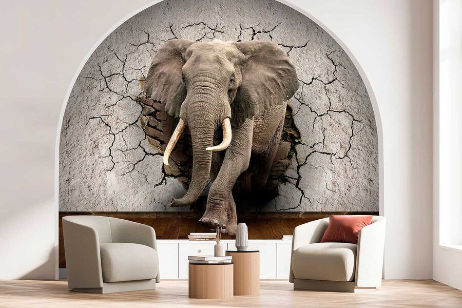 Wyobraź sobie majestatycznego słonia przebijającego się przez twoją ścianę – mówimy o wyrazistym elemencie! Ta fototapeta “Elephant Bursting through the Wall” to prawdziwy początek rozmowy. Idealna do pokoju dziecięcego, przytulnego kącika do czytania lub gdziekolwiek chcesz dodać odrobinę dzikiej przygody. Szczegółowość jest niesamowita – każda zmarszczka, każde pęknięcie w ścianie, to tak, jakby słoń mógł po prostu wejść do twojego salonu!