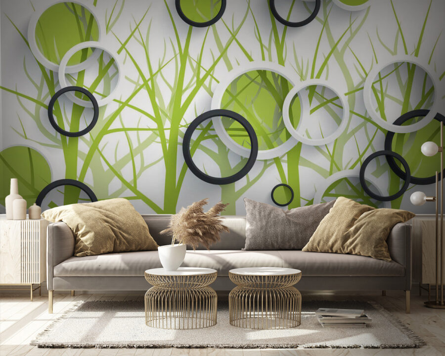 Transforming a room into a cozy haven might just be a peel-and-stick away with this “Wall Murals Wallpaper with Circles and Trees.” Imagine stepping into a world where geometric shapes meet nature’s charm. Those vibrant greens mixed with the clean lines of circles create an airy vibe that feels fresh—like opening a window on a spring day!