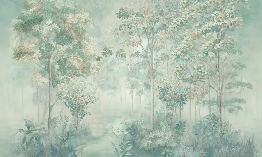 Miękka zieleń, delikatne kwiaty i wysokie drzewa tworzą pogodną, uspokajającą atmosferę. Można niemal usłyszeć śpiew ptaków i poczuć chłodne, rześkie powietrze – całkowicie magiczne, prawda? Idealny dla każdego, kto kocha odrobinę tajemnicy natury w swoim wystroju. Niezależnie od tego, czy idealnie pasuje do kącika do czytania zen, czy też tchnie świeże życie w zwykłą ścianę, ta fototapeta nie tylko składa oświadczenie; szepcze słodkie nuty spokoju. Dodaj ją do swojej przestrzeni i obserwuj, jak przekształca się w uspokajające miejsce odosobnienia. Bo, szczerze mówiąc, komu nie przydałaby się odrobina zaczarowanego lasu w codziennym życiu?