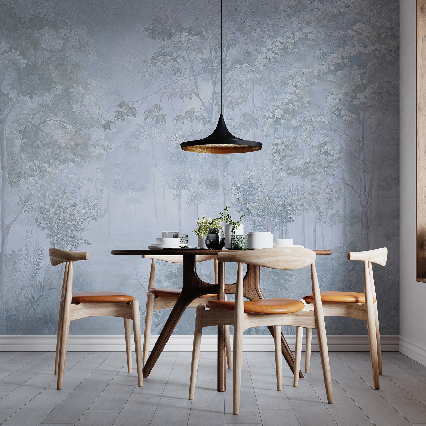 Wkrocz w senną ucieczkę z tą czarującą fototapetą ścienną przedstawiającą drzewa i rośliny. Wyobraź sobie delikatny szelest liści i miękkie szepty mglistego lasu w swoim salonie. To jak przeniesienie kawałka natury do domu, bez robaków i przemoczonych butów. Stonowane kolory tworzą kojącą atmosferę, idealną na przytulne wieczory lub relaksujące poranki przy kawie. Jest to ciche przypomnienie, aby zwolnić i oddychać, dzięki czemu każda przestrzeń wydaje się spokojniejsza. Przekształć swoje ściany za pomocą tego pogodnego akcentu i pozwól, aby urok natury ogarniał Cię każdego dnia.