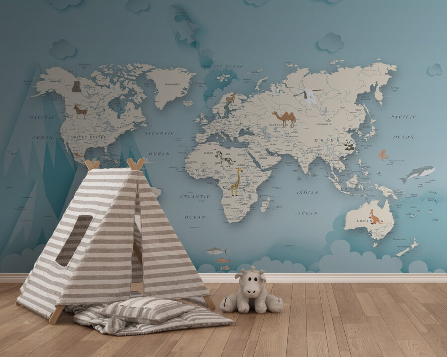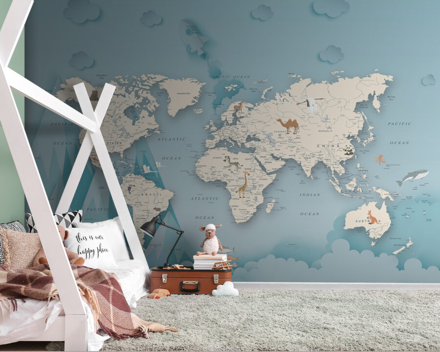 Przekształć każdy pokój w przytulną przygodę dzięki tej uroczej fototapecie przedstawiającej wielbłąda na kapryśnej mapie. Jest idealna dla małych odkrywców lub każdego, kto marzy o odległych miejscach. Wyobraź sobie, że patrzysz na nią popijając gorące kakao, planując kolejną wyimaginowaną podróż dookoła świata. Delikatne kolory i zabawne ilustracje wzbudzają ciekawość, dzięki czemu świetnie nadają się do rozmów o geografii lub podróżach. Dodatkowo, dodaje odrobinę zabawy do nudnych ścian. Dlaczego nie wprowadzić do swojej przestrzeni poczucia żądzy wędrówki?