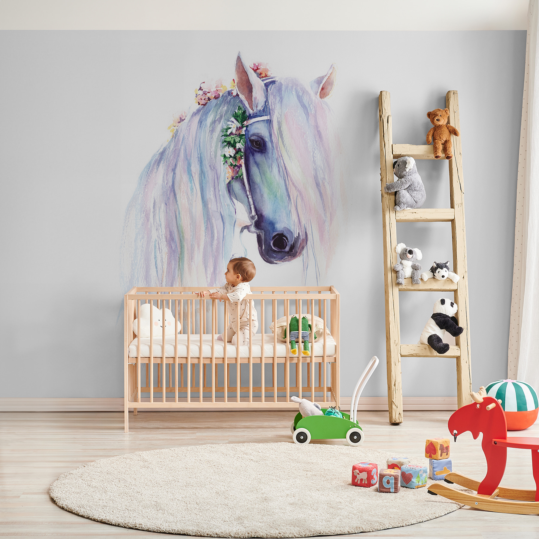 Rozjaśnij każdą przestrzeń dzięki tej zachwycającej fototapecie ściennej przedstawiającej majestatycznego konia ozdobionego kwiatami. Wyobraź sobie, że wchodzisz do pokoju i jesteś witany przez tego łagodnego olbrzyma, którego elegancka grzywa spływa kaskadą jak wodospad kolorów. Idealny zarówno dla dzieci, jak i miłośników kapryśnych dekoracji, wnosi odrobinę natury do wnętrza. Delikatne pastele sprawiają, że wszystko wydaje się lżejsze i trudno się nie uśmiechnąć. Wyobraź sobie czytanie bajki z dziećmi w pobliżu tej fototapety – każde spojrzenie to mała przygoda, która czeka na to, by się wydarzyć. To nie tylko dekoracja, to zaproszenie do marzeń!