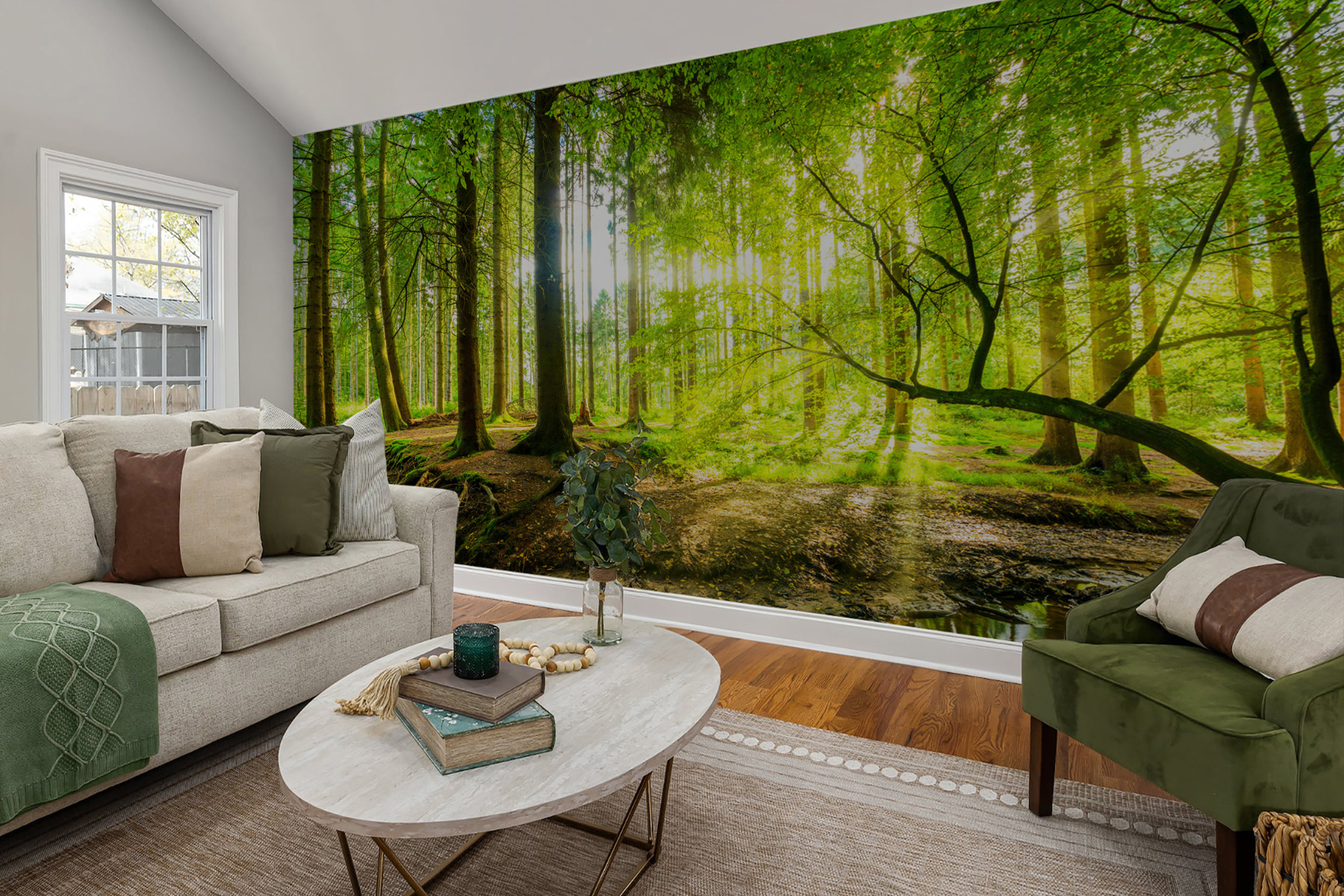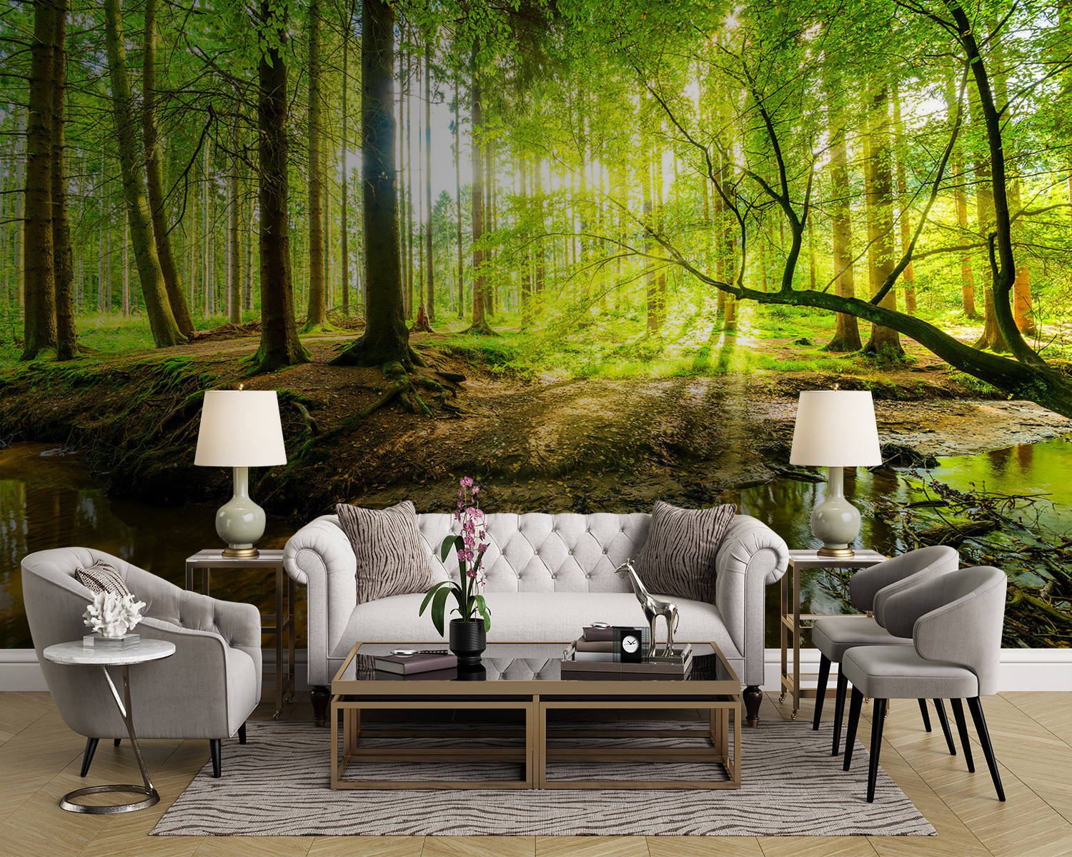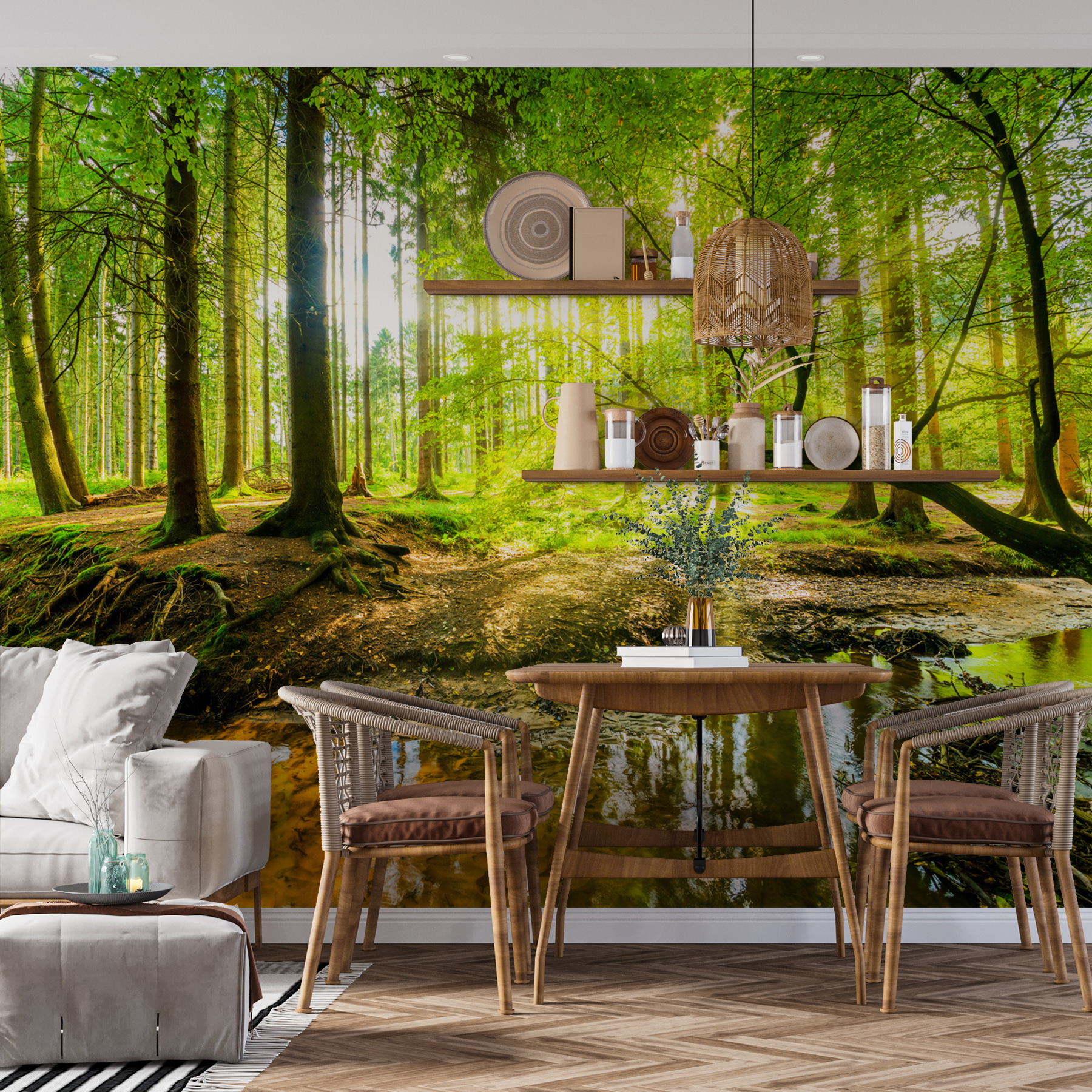 Wyobraź sobie, że wchodzisz do swojego małego leśnego zacisza za każdym razem, gdy wchodzisz do pokoju. Ta fototapeta ścienna przenosi żywą leśną scenerię wprost do twojej przestrzeni, wraz z wysokimi drzewami i światłem słonecznym przenikającym przez liście. To tak, jakby sama natura postanowiła się tu wprowadzić. Wyobraź sobie zwinięcie się w kłębek z dobrą książką, otoczone odcieniami zieleni i miękkimi, ziemistymi wibracjami leśnej podłogi. I hej, jeśli kiedykolwiek będziesz potrzebować chwili, by uciec od codziennej harówki, ta fototapeta zapewni ci ochronę. Idealna, by rozbudzić marzenia o wędrówkach i przygodach na świeżym powietrzu lub po prostu cieszyć się przytulnym wieczorem w domu. To odrobina spokoju, która robi duże wrażenie, zamieniając każdą ścianę w powiew świeżego powietrza. Kto mógłby się oprzeć?