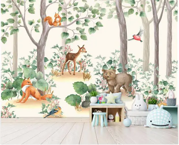 Wyobraź sobie, że codziennie wchodzisz do magicznego lasu! Ta fototapeta “Woodland Animals” jest jak ożywiona bajka. Wyobraź sobie urocze lisy, ciekawskie jelenie i figlarne wiewiórki wśród bujnych drzew i delikatnych kwiatów. Idealna do pokoju dziecięcego – pobudza wyobraźnię i wprowadza naturę do wnętrza. Ma delikatny, kapryśny klimat, który sprawi, że każdy się uśmiechnie. Wyobraź sobie bajki na dobranoc pod tą fototapetą, czując się jak w przytulnej leśnej przygodzie. Po prostu zachwycające i rozgrzewające serce, prawda? Prawdziwy początek rozmowy!