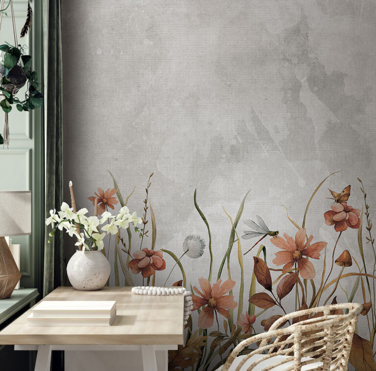 Transform your space into a dreamy garden with this stunning wall mural of flowers and grass. Imagine waking up every day surrounded by delicate blooms and gentle greens, like stepping right into nature—without the bugs! The soft colors evoke a sense of calm, making it perfect for a cozy living room or a peaceful bedroom retreat.