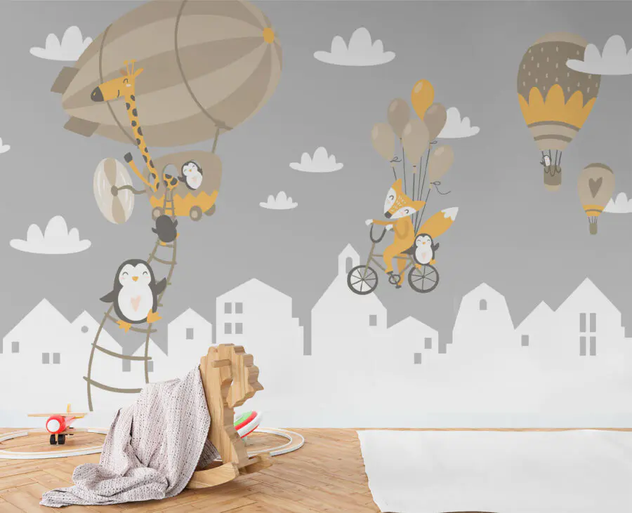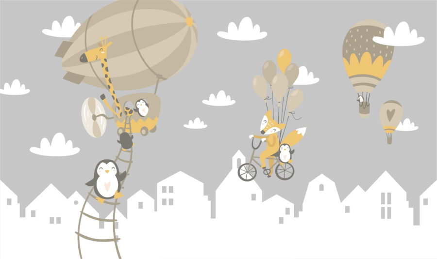 Czy kiedykolwiek marzyłeś o żyrafie i pingwinie podczas przygody balonem na ogrzane powietrze w swoim salonie? Ta kapryśna fototapeta jest idealna do wniesienia odrobiny radości i magii do każdego pokoju dziecięcego. Wyobraź sobie, że budzisz się z tymi uroczymi podróżnikami unoszącymi się wysoko nad chmurami, rozsiewającymi chichot i wyobraźnię. To nie tylko dekoracja, ale także iskra kreatywności. Wyobraź sobie opowiadanie historii pod tą sceną! Delikatne, figlarne odcienie sprawiają, że jest ona przyjemna dla oczu i z pewnością stanie się ulubionym tłem dla zabaw, przytulnych drzemek i marzeń. Idealny do przekształcenia zwykłych ścian w niezwykłe przygody!