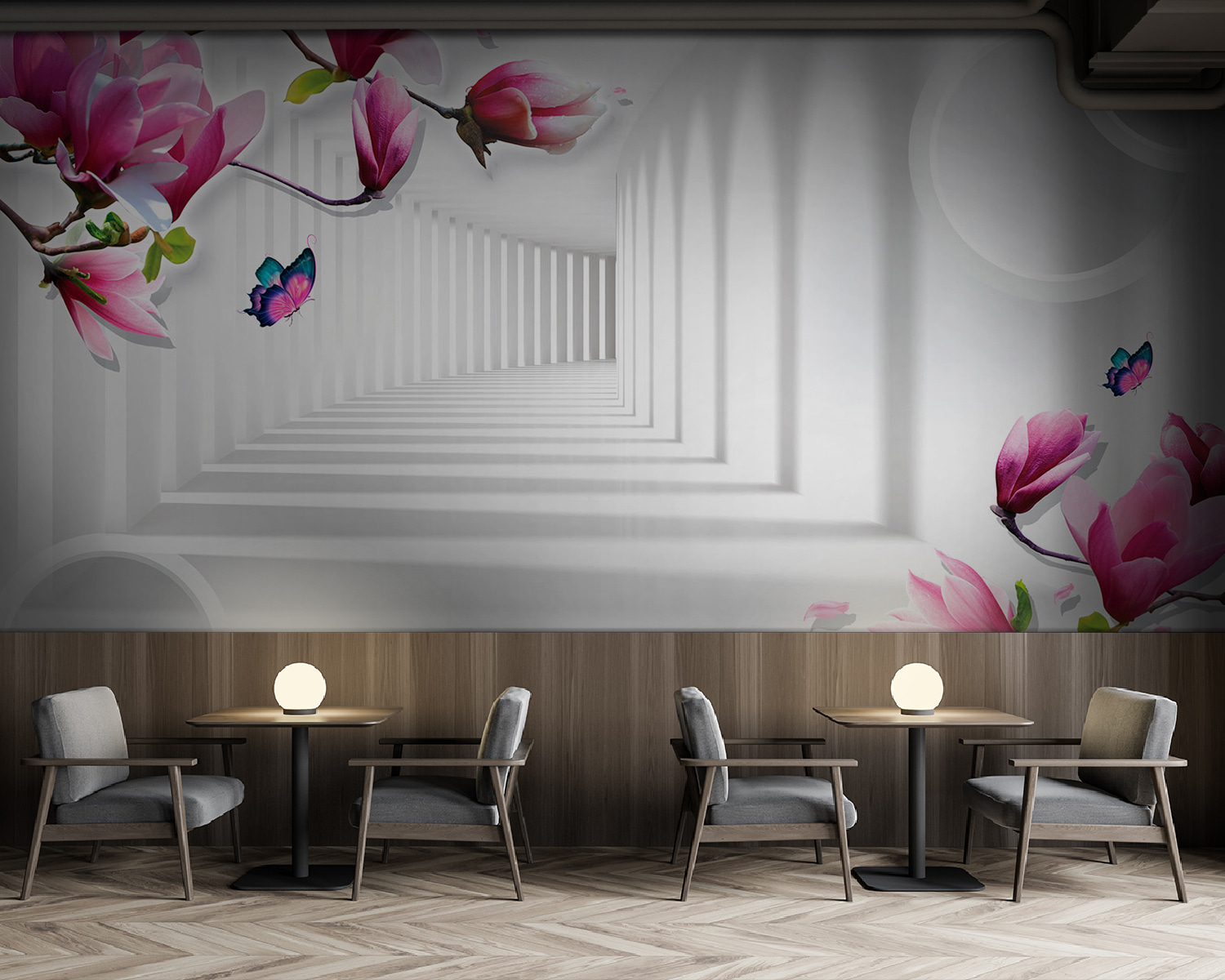 Wyobraź sobie, że budzisz się w pokoju wypełnionym spokojną elegancją różowych kwiatów delikatnie unoszących się obok delikatnych motyli – brzmi niemal magicznie, prawda? Ta fototapeta ścienna “Różowe kwiaty z motylami i wodą” właśnie to zapewnia. Idealna dla każdego, kto kocha połączenie piękna natury i nowoczesnego efektu 3D, ta fototapeta może przekształcić zwykłą przestrzeń w spokojne sanktuarium.
