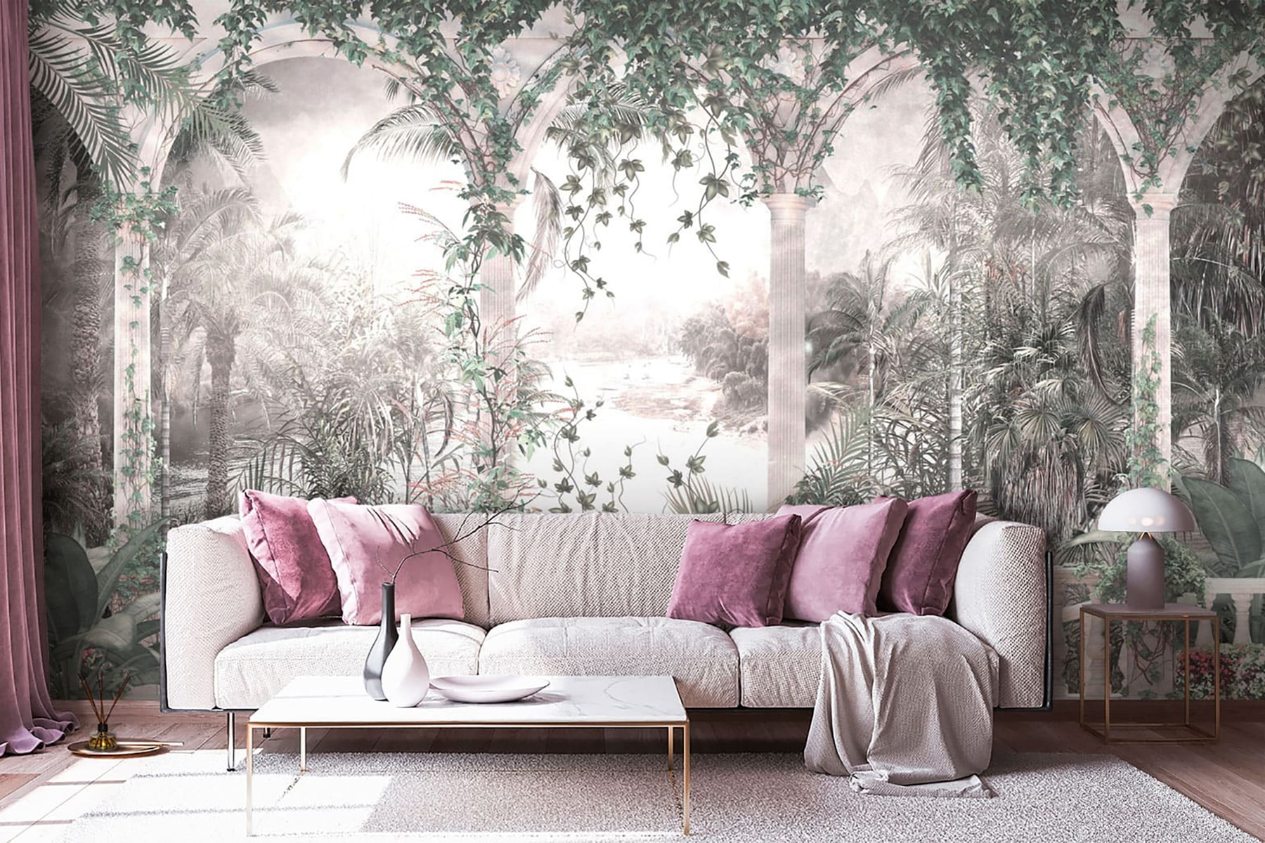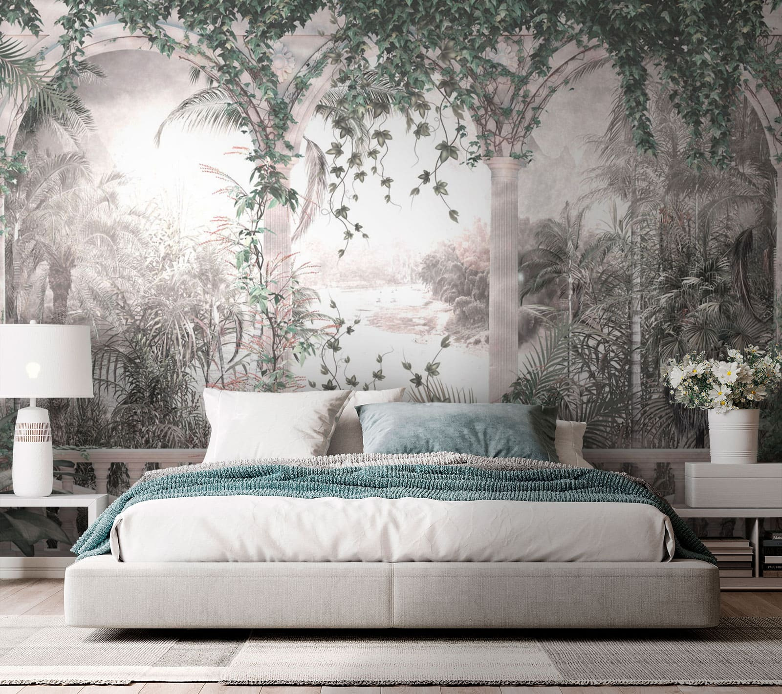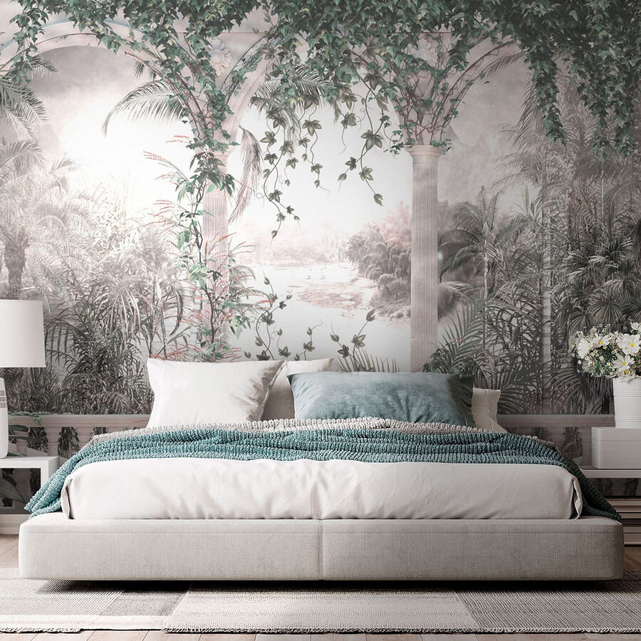 Wejdź do spokojnej ucieczki z tą fototapetą, zapraszając bujne winorośle i wdzięczne łuki prosto do swojego domu. Wyobraź sobie popijanie porannej kawy, gdy światło słoneczne przenika przez zieloną roślinność, tworząc spokojną atmosferę, która jest zarówno orzeźwiająca, jak i ponadczasowa. Miękkie tło wskazuje na spokojny krajobraz, dzięki czemu łatwo zapomnieć o świecie zewnętrznym. Ta fototapeta to nie tylko dekoracja ścienna; to mini-wakacje, które czekają, aby się wydarzyć. Idealna do przekształcenia nudnego pokoju w przytulny zakątek, dodaje warstwę ciepła i uroku, który pobudza wyobraźnię.