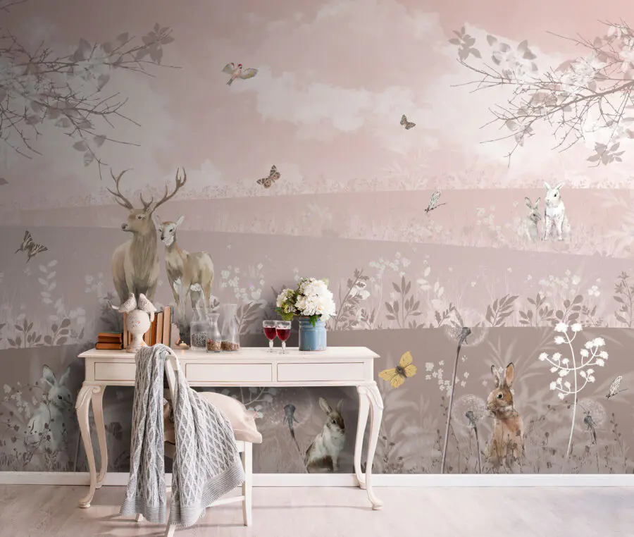 Wyobraź sobie, że wchodzisz do pokoju, w którym czujesz się jak w sennym lesie, gdzie jelenie i króliki swobodnie spędzają czas, zupełnie nie przejmując się światem. Taki właśnie nastrój uzyskasz dzięki fototapecie “Deer and Rabbits in a Serene Landscape”. Jest idealna do przekształcenia każdej przestrzeni w spokojne miejsce. Niezależnie od tego, czy jest to pokój córki, przytulny kącik, czy nawet salon, ta fototapeta wprowadza piękno natury do wnętrza. Podczas picia porannej kawy będziesz marzyć, wyobrażając sobie delikatną bryzę i szelest liści. Dzięki delikatnym odcieniom i uroczym dzikim zwierzętom, praktycznie błaga o dobrą książkę lub trochę ciszy. Jeśli więc chciałeś dodać odrobinę magii do swoich ścian, to jest to idealne rozwiązanie. Poza tym, kto nie chciałby odrobiny leśnej magii w swoim domu?