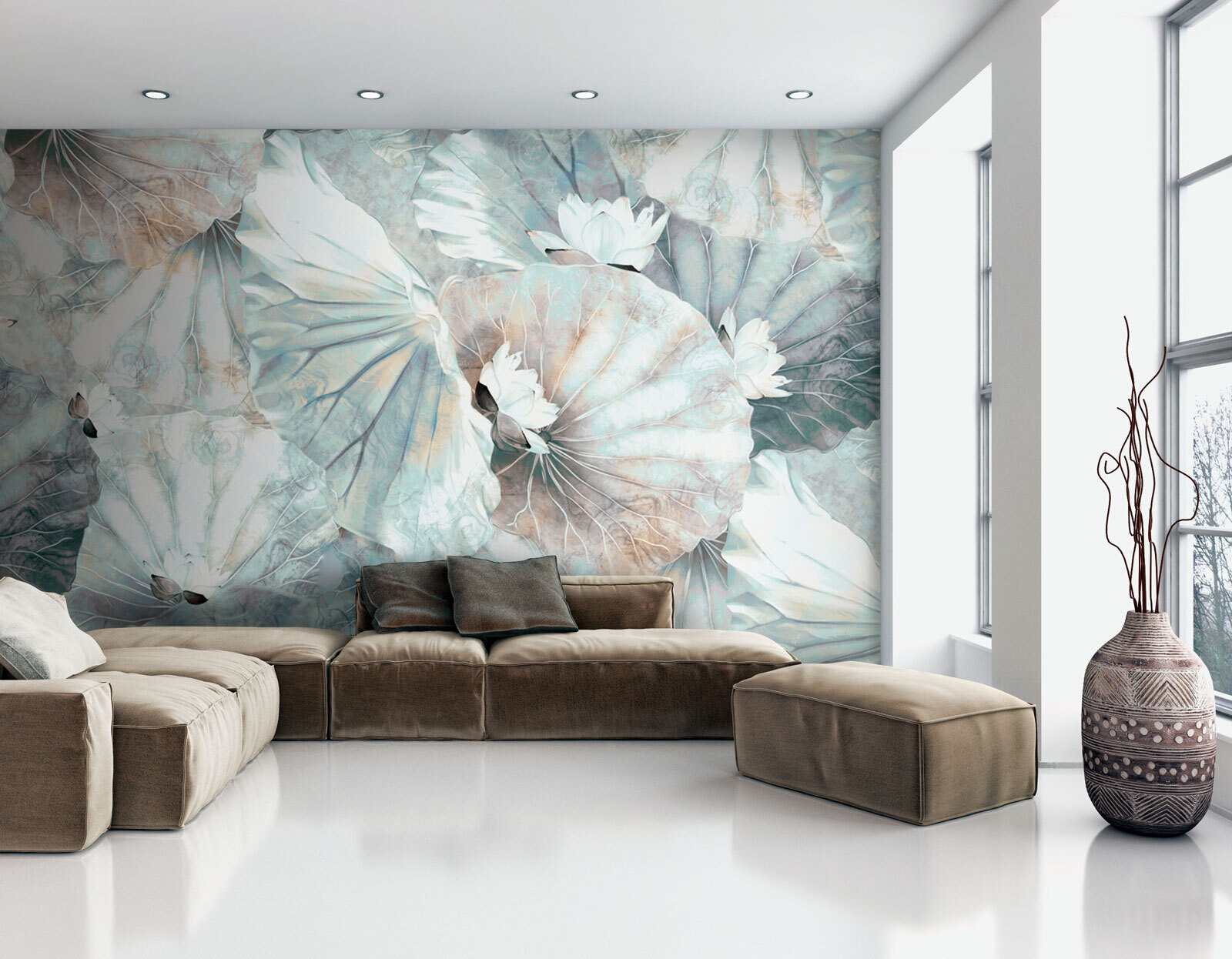 Przekształć swoją przestrzeń w spokojną ucieczkę dzięki tej eleganckiej fototapecie z kwiatami i liśćmi lotosu. Wyobraź sobie, że wchodzisz do uspokajającej oazy za każdym razem, gdy wchodzisz do pokoju. Delikatne, stonowane kolory tworzą lekką i przewiewną atmosferę, idealną zarówno do przytulnych zakątków, jak i ożywionych spotkań. To prawie tak, jakby szept natury zapraszał do relaksu, oddychania i marzeń. Wyobraź sobie dodanie tej fototapety do swojego domowego biura, aby uzyskać odrobinę inspiracji lub w kąciku do czytania, aby podnieść poziom swoich opowieści. Ten projekt nie tylko dekoruje; zamienia ściany w płótno spokoju, przypominając, że piękno można znaleźć w każdym najmniejszym szczególe. Kto by pomyślał, że ściana może mieć taki urok?