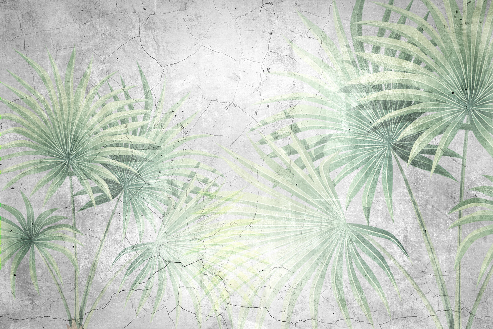 Fototapeta Zielone liście na popękanej fototapecie. (SKU: u94284)