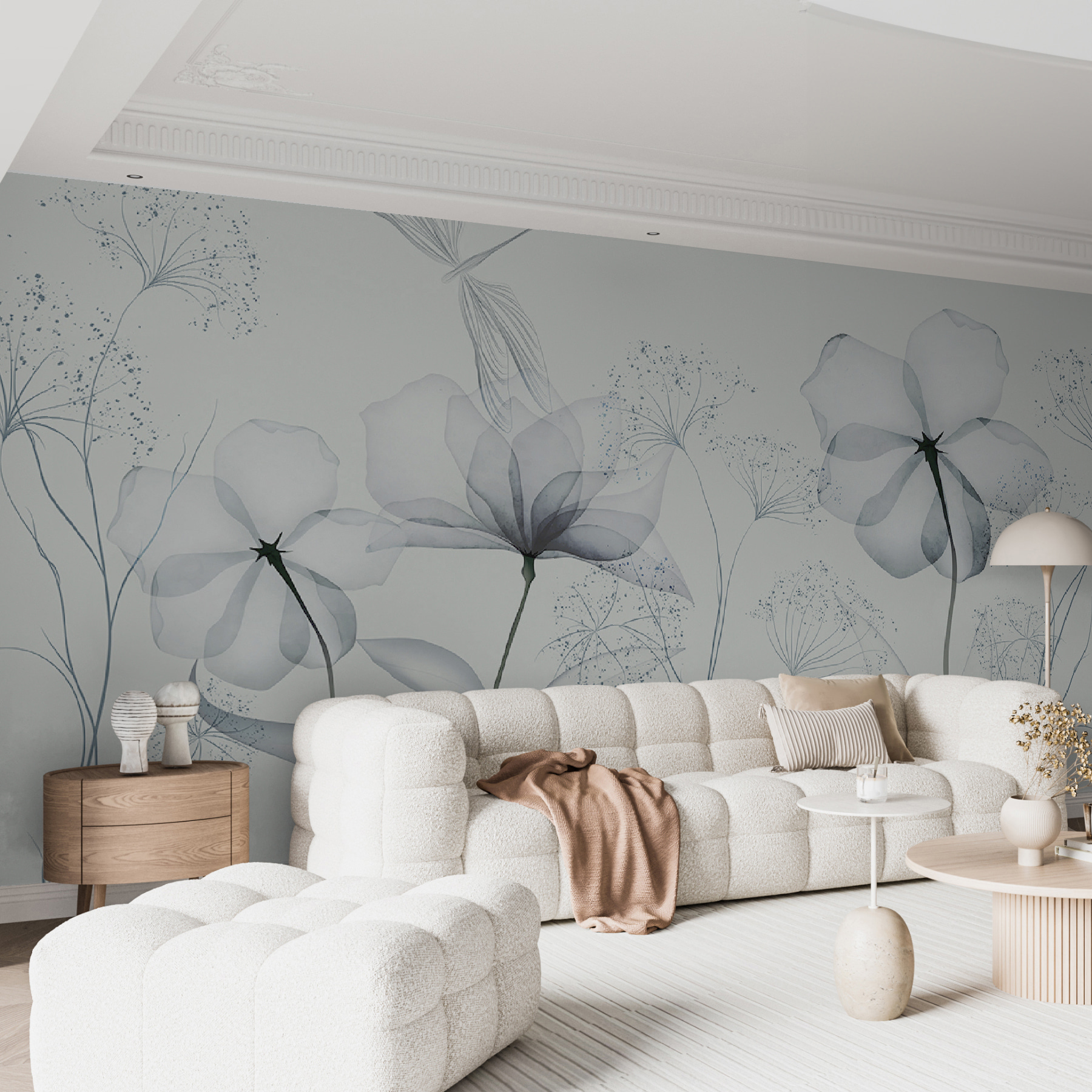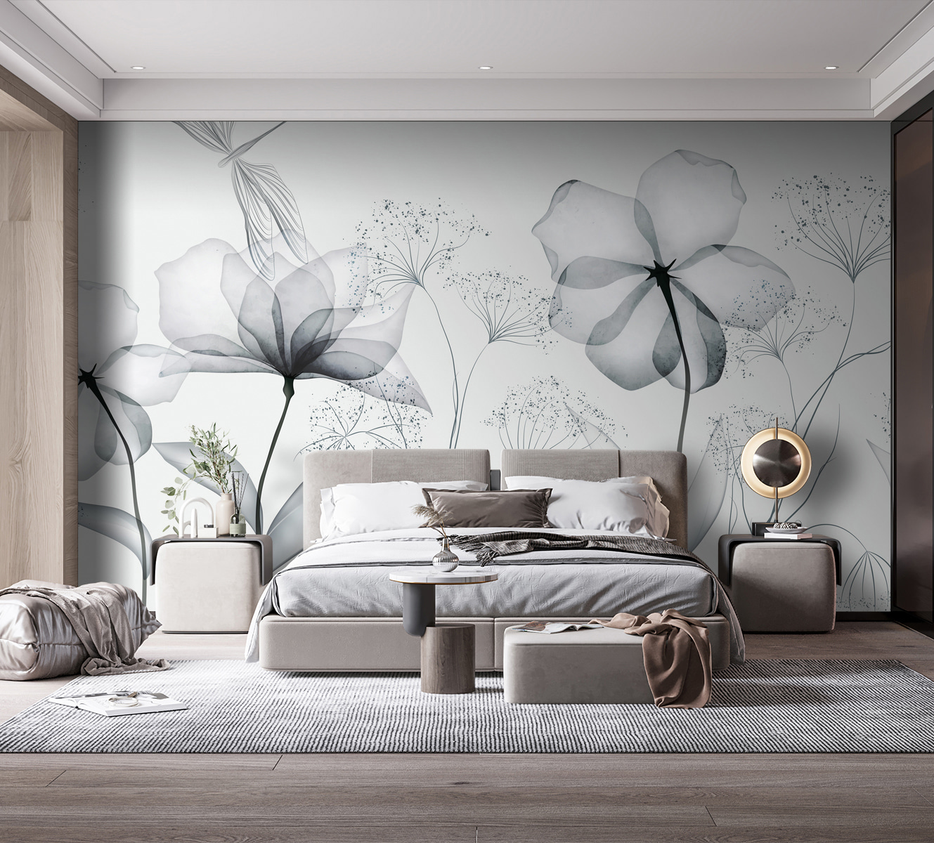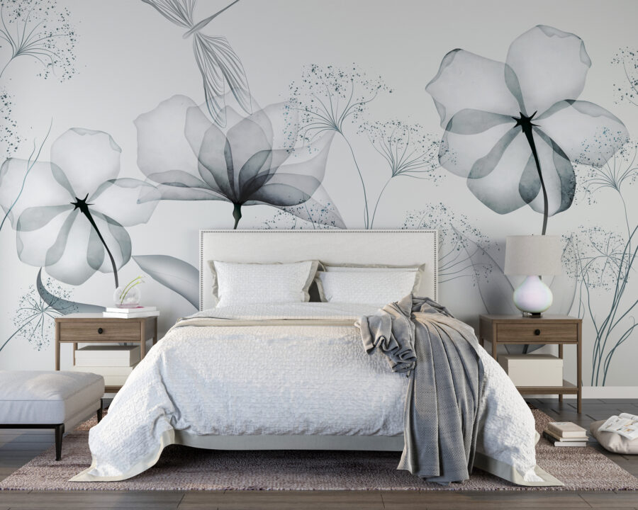 Wyobraź sobie, że wchodzisz do pokoju i witasz się z prostym pięknem delikatnych, monochromatycznych kwiatów. Ta fototapeta to nie tylko dekoracja – to nastrój. Każdy kwiat, delikatnie szczotkowany w delikatnej skali szarości, mówi o spokojnych porankach i spokojnych popołudniach. Idealna dla tych, którzy kochają minimalizm, ale pragną odrobiny natury. To tak, jakby mieć akwarelowy ogród w swoim salonie, bez podlewania! Niezależnie od tego, czy marzysz w swoim ulubionym fotelu, czy przyjmujesz przyjaciół, ta fototapeta sprawi, że wszystko stanie się odrobinę spokojniejsze. Mały kawałek spokoju na ścianie. Kto by tego nie pokochał?