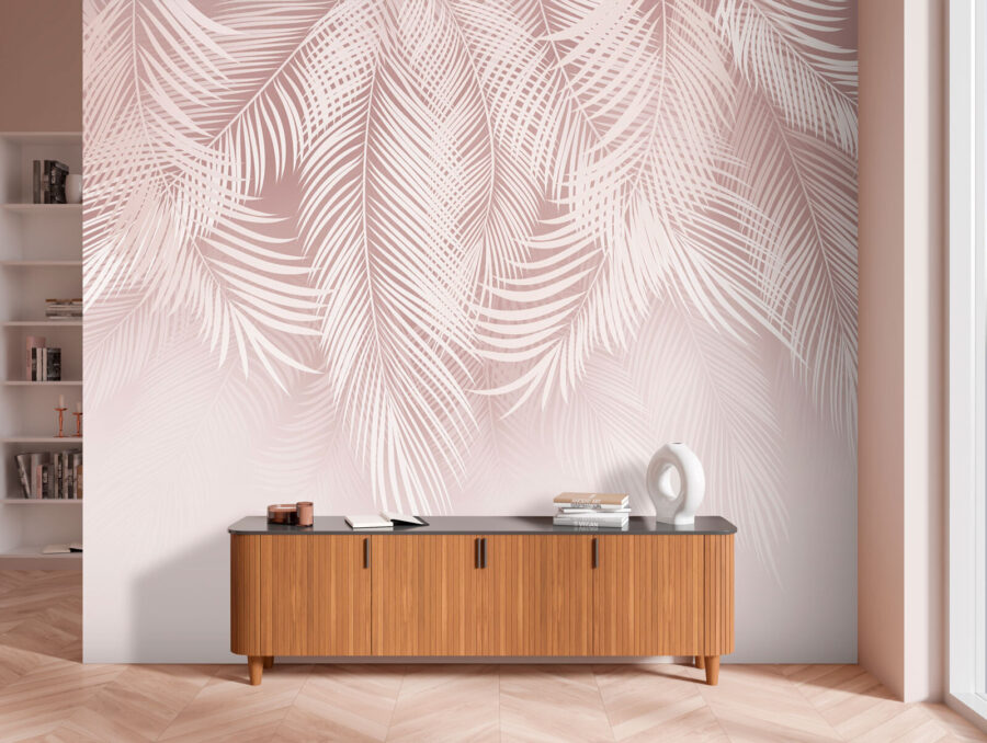 Wyobraź sobie, że wchodzisz do pokoju i od razu przenosisz się do spokojnej tropikalnej oazy. To właśnie magia tych fototapet z miękkimi liśćmi palmowymi na pastelowym tle. Są one idealne dla tych, którzy uwielbiają dodawać odrobinę natury bez popadania w przesadę. To tak, jakby mieć mały kawałek raju w swoim domu. Eleganckie, delikatne liście przynoszą poczucie spokoju – prawie tak, jakbyś słyszał delikatną bryzę szeleszczącą wśród palm.