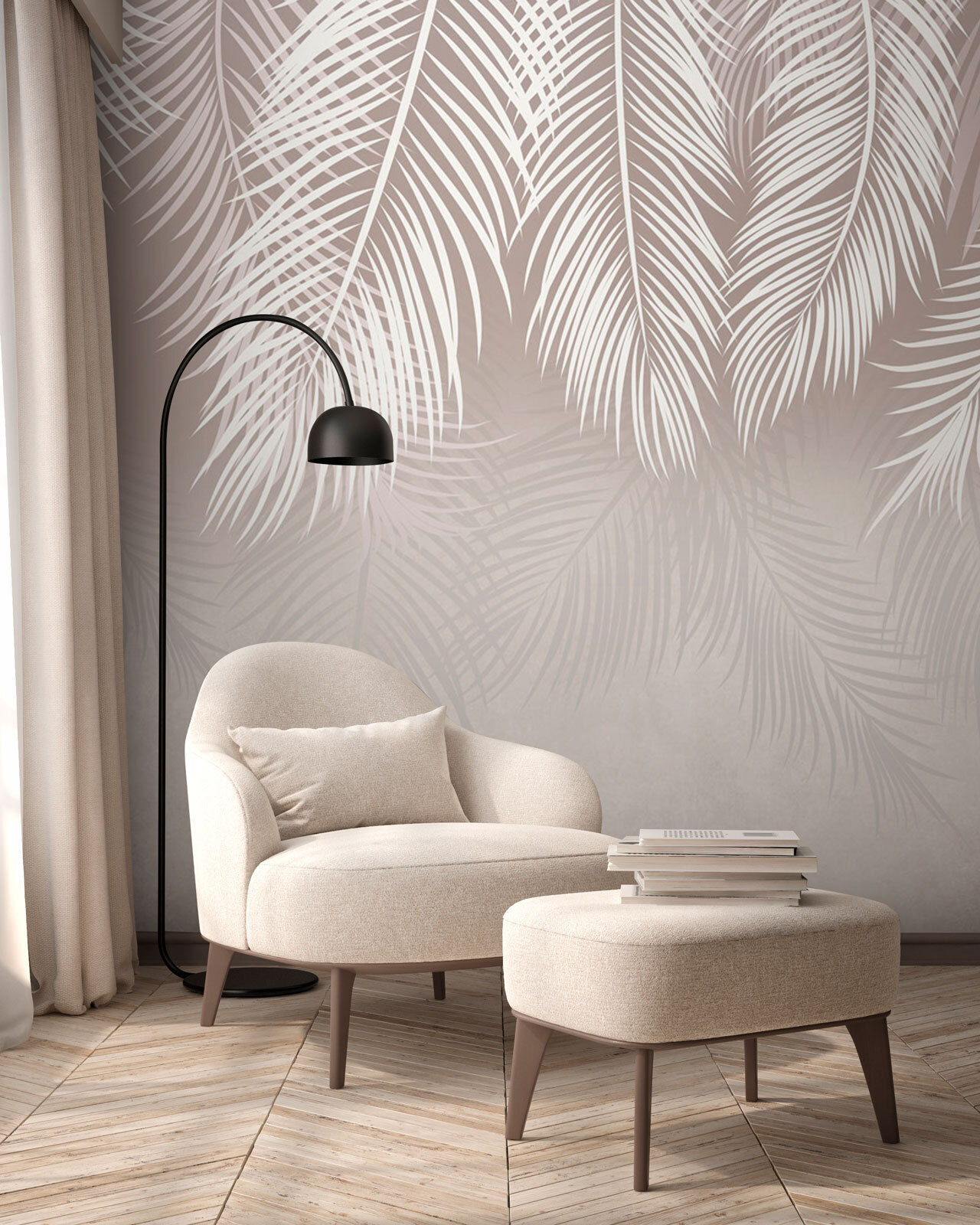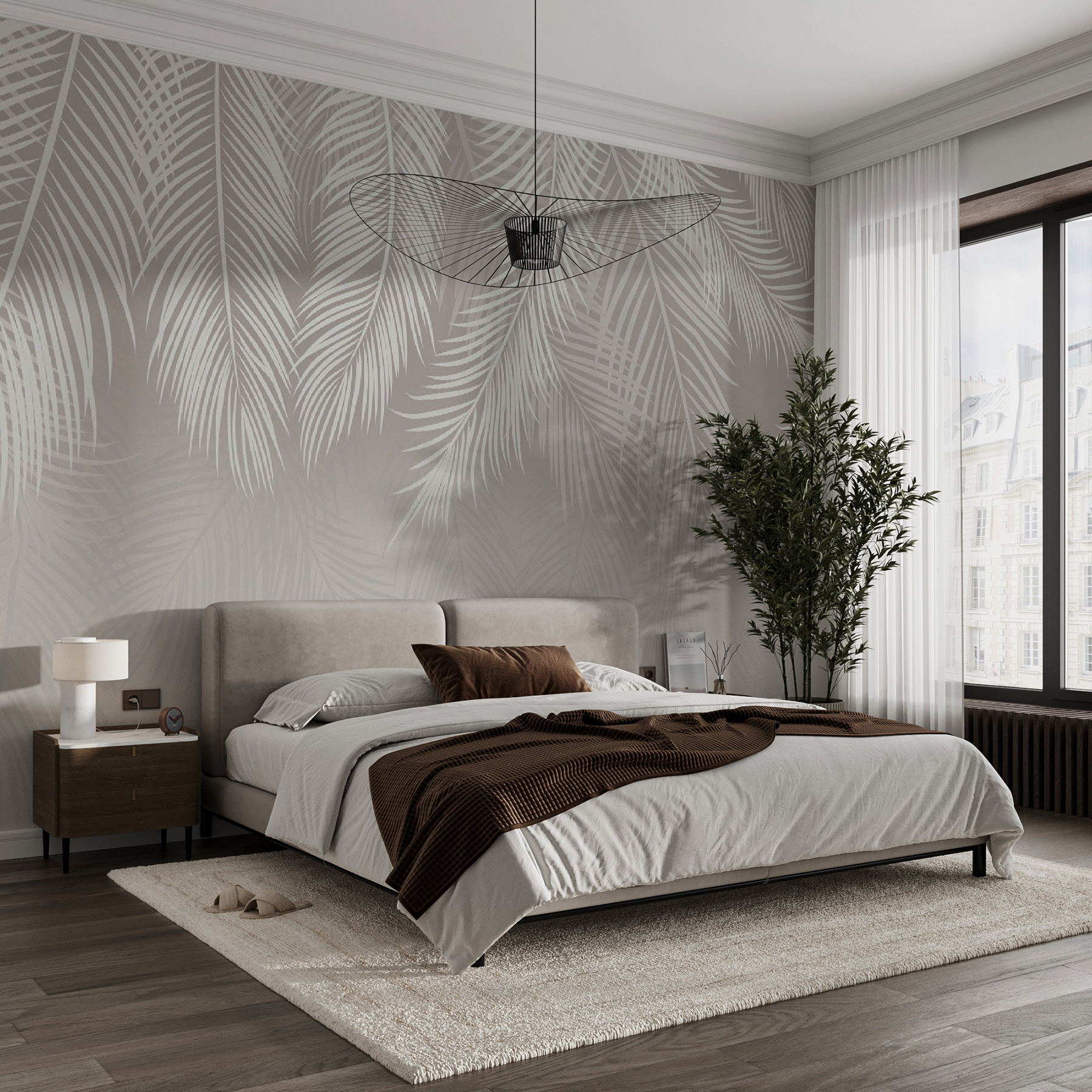 Odmień swoją przestrzeń dzięki tej eleganckiej fototapecie z motywem liści palmowych, będącej idealnym połączeniem spokoju i stylu. Wyobraź sobie, że wchodzisz do pokoju, który szepcze relaks z każdym spojrzeniem. Miękkie, subtelne liście tworzą uspokajające tło, jakbyś wkroczył do spokojnego tropikalnego raju bez wychodzenia z domu. To jak mini-wakacje bezpośrednio na ścianie. Znajomi mogą zapytać, czy zainstalowałeś okno do jakiegoś bujnego ogrodu. Idealna do przytulnego kącika do czytania lub tętniącego życiem salonu, ta fototapeta wnosi powiew świeżego powietrza i odrobinę natury do wnętrza.