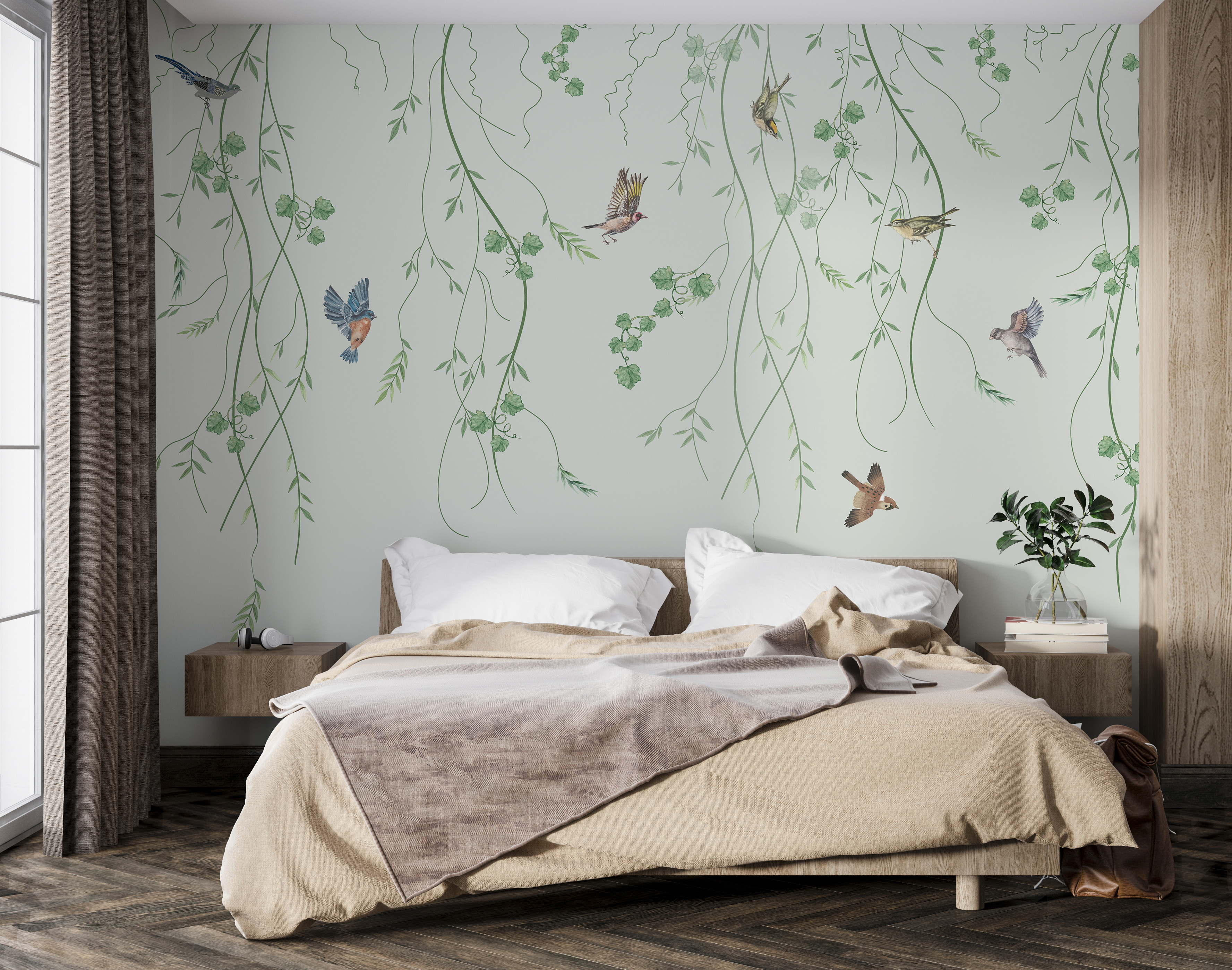 Wyobraź sobie, że wnosisz świeżość ogrodu na zewnątrz – wszystko podczas popijania porannej kawy. Fototapeta ścienna “Ptaki latające wśród wiszących pnączy” jest jak umieszczenie małego kawałka natury na ścianie. Ptaki w locie, zwisające bujne pnącza – po prostu piękne. Można niemal pomyśleć, że są żywe. Idealny do salonu, sypialni, a nawet domowego biura. Ma ten spokojny, uspokajający klimat, którego wszyscy pragniemy po długim dniu. Przytulny, a jednocześnie elegancki. To coś, co sprawia, że uśmiechasz się za każdym razem, gdy przechodzisz obok. A odrobina uroku natury? Zawsze dobry idea❤️